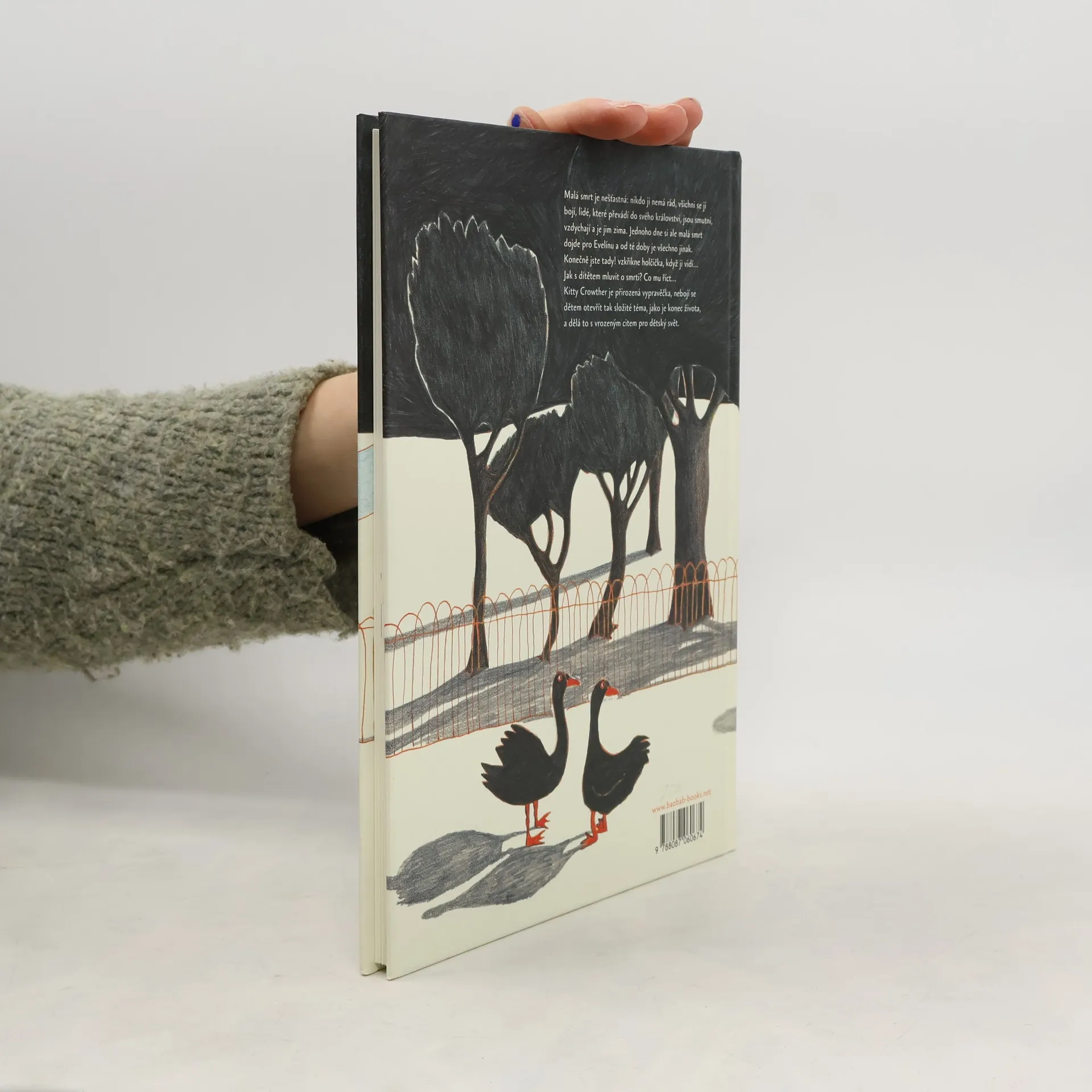 Malá smrt je nešťastná: nikdo ji nemá rád, všichni se jí bojí, lidé, které převádí do svého království, jsou smutní, vzdychají a je jim zima. Jednoho dne si ale malá smrt dojde pro Evelínu a od té doby je všechno jinak. Konečně jste tady! vzkřikne holčička, když ji vidí... Jak s malým dítětem mluvit o smrti? Co mu říct... Kitty Crowter je přirozená vypravěčka, nebojí se dětem otevřít tak složité téma, jako je konec života, a dělá to s vrozeným citem pro dětský svět. -- zdroj: kosmas.cz --