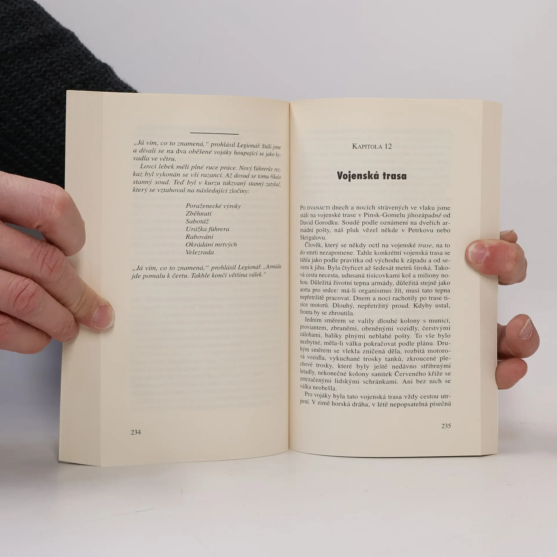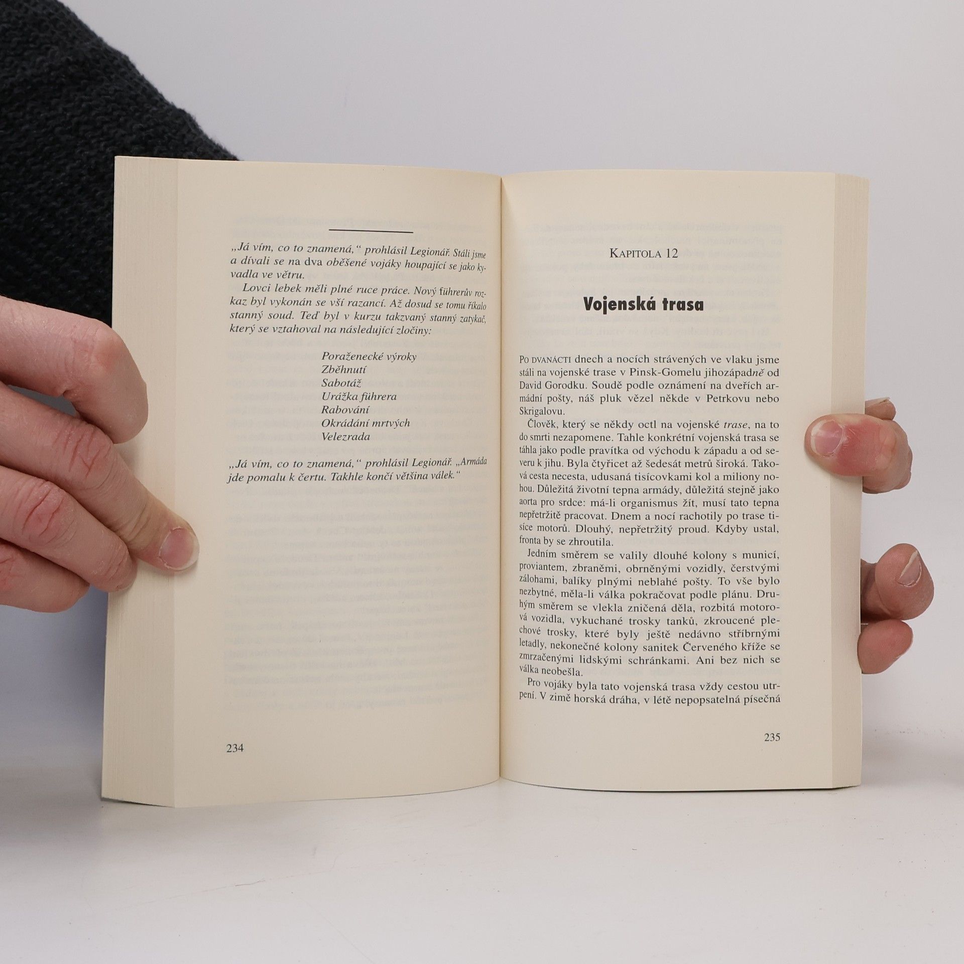 Hrdina má větší štěstí než mnoho jeho spolubojovníků: z východní fronty se na rozdíl od nich vrací, byť lazaretním vlakem s omrzlinami druhého stupně. Cesta do Krakova, již absolvuje společně s Drobečkem trvá dvanáct dnů, a transport přežije jenom třetina zraněných. Poté se oba přátelé léčí v hamburské nemocnici, vymetají bordely a putyky a hrdina se seznamuje s důstojnickou paničkou Gizelou. Odmítají režim, který je nutí bojovat až do hořkého konce bez ohledu na lidské životy, což vede k řadě střetnutí s vojenskou policií. Jednou z bestií v lidské podobě je obrovitý rotný Braun, jehož nakonec Drobeček zaškrtí kusem ocelového drátu. Příjemný život v zázemí však nemůže trvat věčně a oba přátele čeká transport zpět do válečného běsnění. Opět se ocitají na východní frontě a opět jim jde o život - německou armádu decimují ruské tankové a letecké útoky, které Hassel dokáže barvitě popsat. Krutá a nesmyslná válka stále ještě pokračuje.