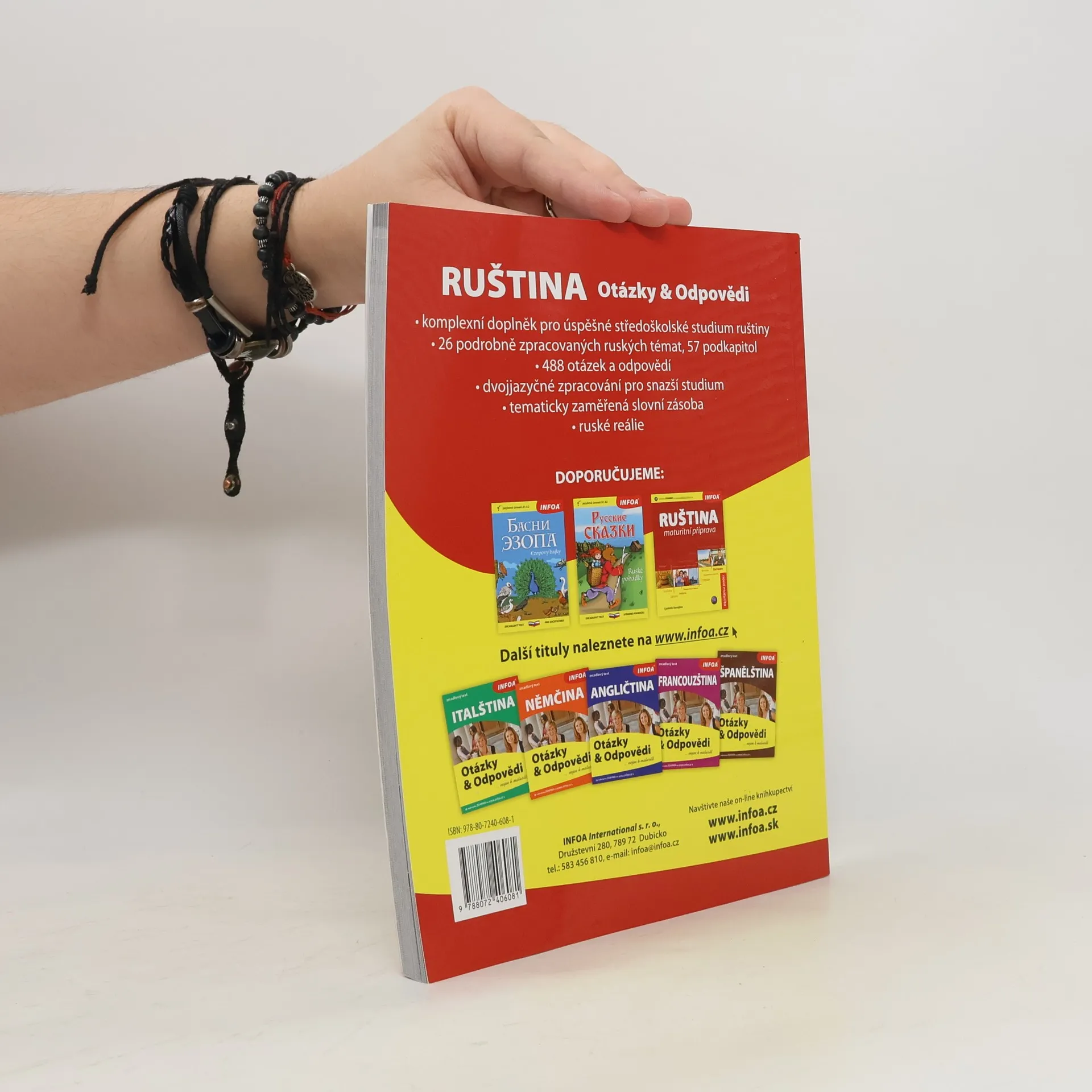 Komplexní doplňková učebnice pro úspěšné středoškolské studium ruštiny obsahuje 26 podrobně zpracovaných témat, 57 podkapitol, 469 otázek a odpovědí, tematicky zaměřenou slovní zásobu a reálie. Dvojjazyčné zpracování pro snazší studium.
