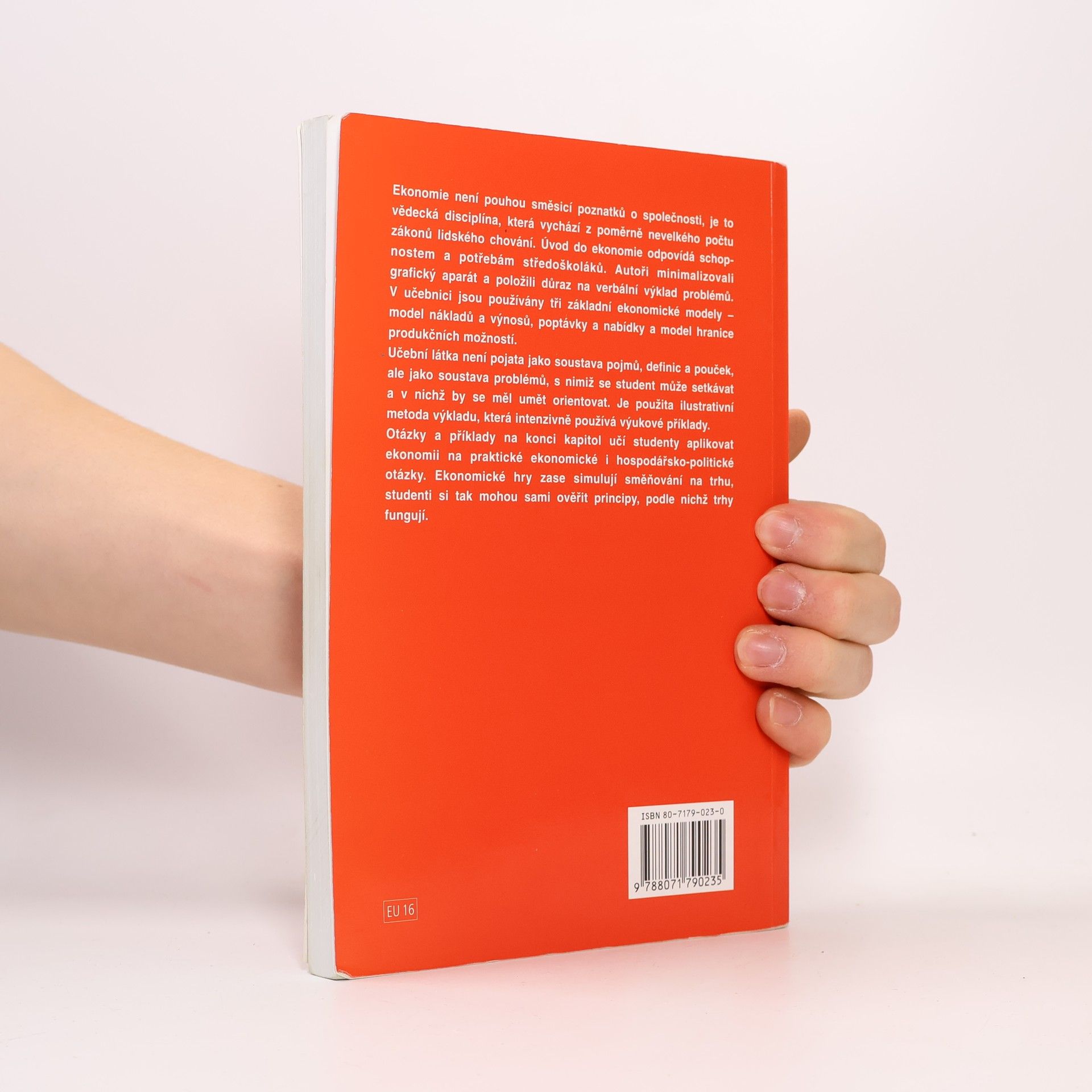 Úvod do ekonomie odpovídá schopnostem a potřebám středoškoláků. Autoři minimalizovali grafický aparát a položili důraz na verbální výklad problémů. V učebnici jsou používány tři základní ekonomické modely - model nákladů a výnosů, poptávky a nabídky a model hranice produkčních možností. Zdroj: http://neoluxor.cz/odborne-knihy/uvod-do-ekonomie-pro-stredni-skoly-eu57--176859/