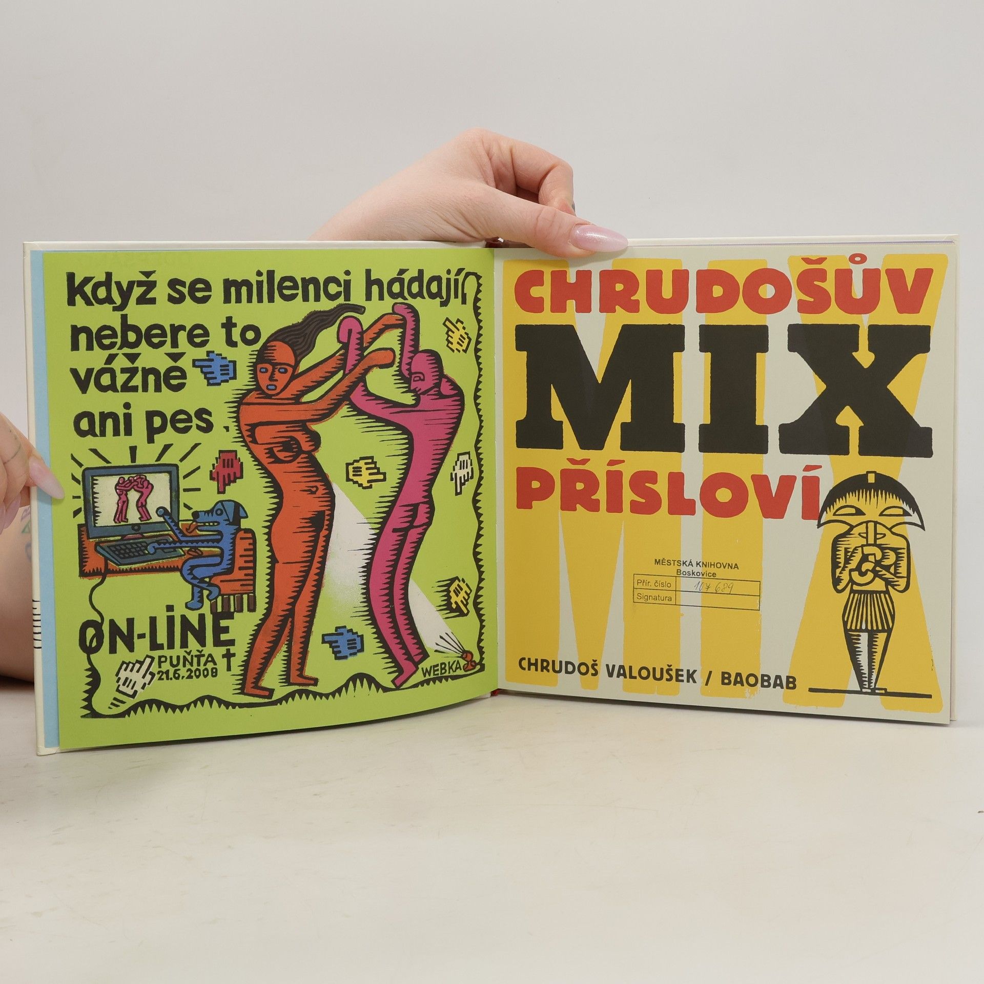 Autorskou knihu Chrudoše Valouška nelze přehlédnout. Je výrazná autorským rukopisem výtvarníka i vlastním obsahem. Přináší soubor lidových přísloví - "Co na srdci, to na jazyku." - i moderních rčení - "Stará láska nerezaví." Poukazem na doslovný popis těchto lidových "mouder" nutí čtenáře přemýšlet o významu sdělení, příběhu, který se za jednou větou skrývá, a navíc často nabízí svou vlastní neotřelou a současnou parafrázi přísloví.Výběrem slovních spojení i způsobem zpracování vytvořil Chrudoš Valoušek dílo vpravdě mezigenerační. Malé čtenáře poučí, velké spíše pobaví. V každém případě je to kniha, u které se může sesednout celá rodina - a lidová slovesnost v tu chvíli ožije do současných poměrů. Pozitivní vliv na dětského čtenáře netřeba asi příliš zdůrazňovat.
