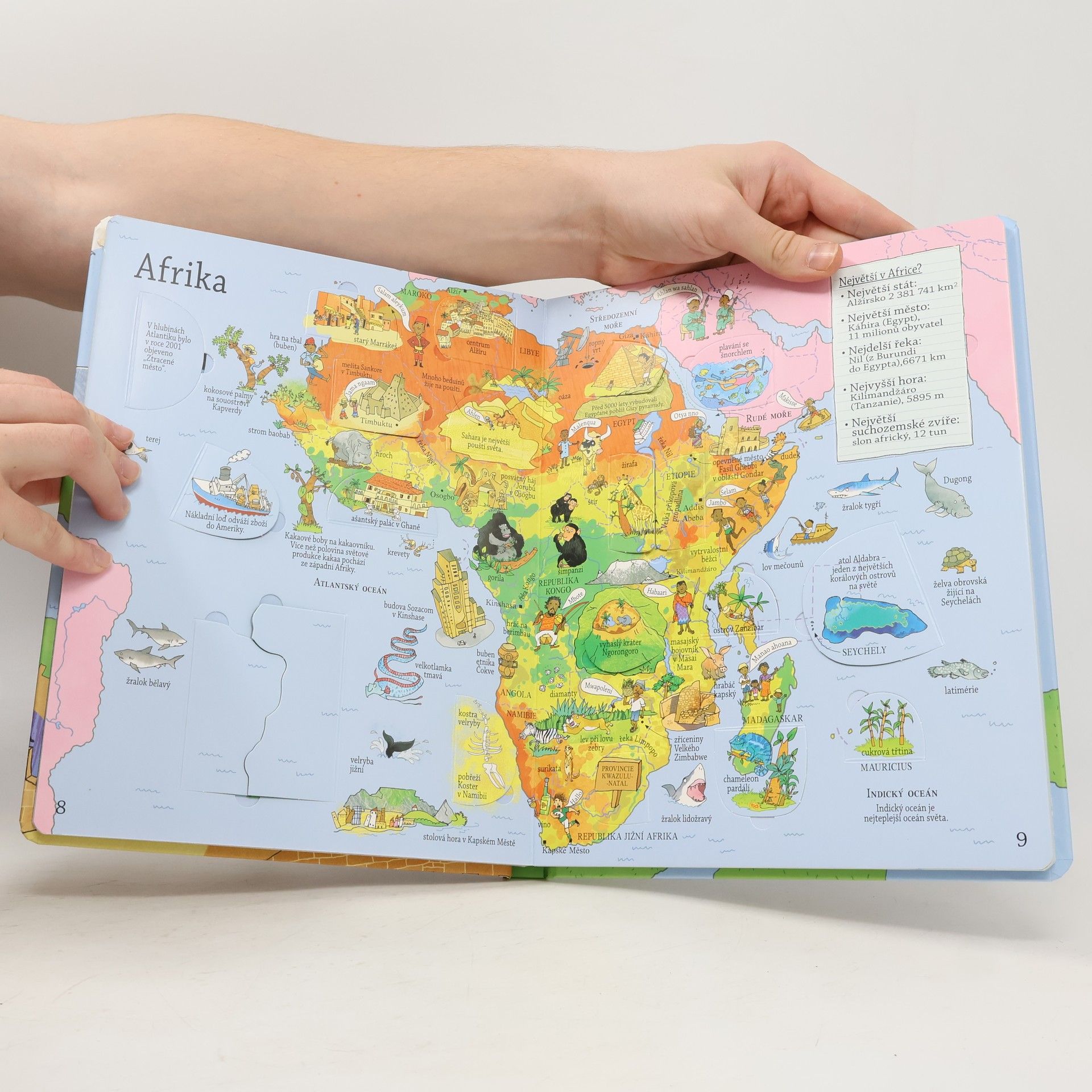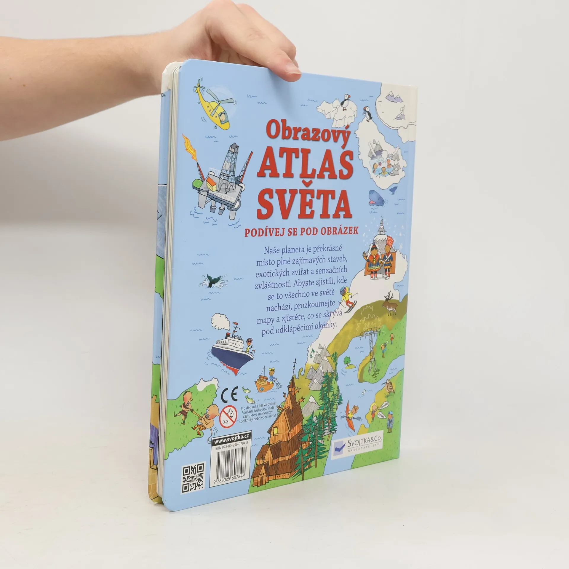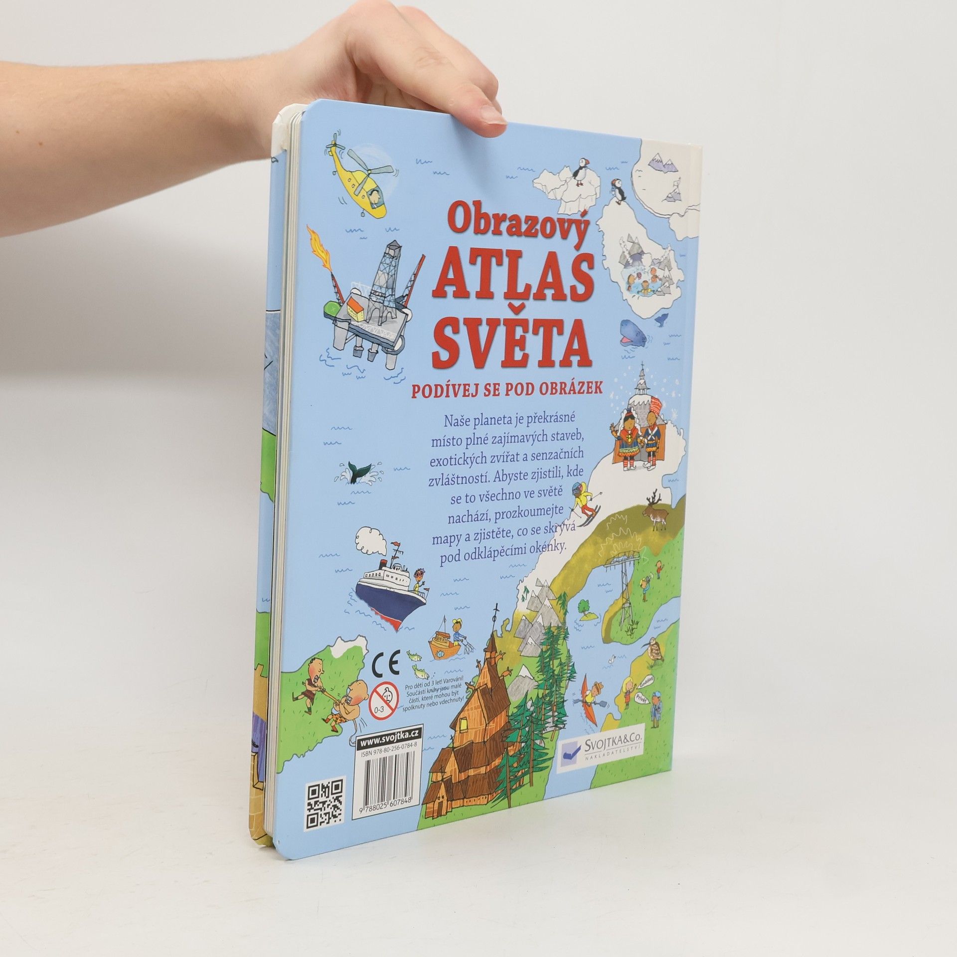 Co je to atlas? Víte, jaké světadíly se na Zemi nacházejí? Naše planeta je překrásné místo plné zajímavých staveb, exotických zvířat a senzačních pozoruhodností. Abyste věděli, kde se to všechno nachází, prozkoumejte mapy v této knížce a zjistěte, co se skrývá pod odklápěcími okénky. Všechny státy světa pohromadě i s jejich hlavními městy a vlajkami navíc najdete i na velké rozkládací mapě, která je ve speciální kapsičce na zadní části knihy.