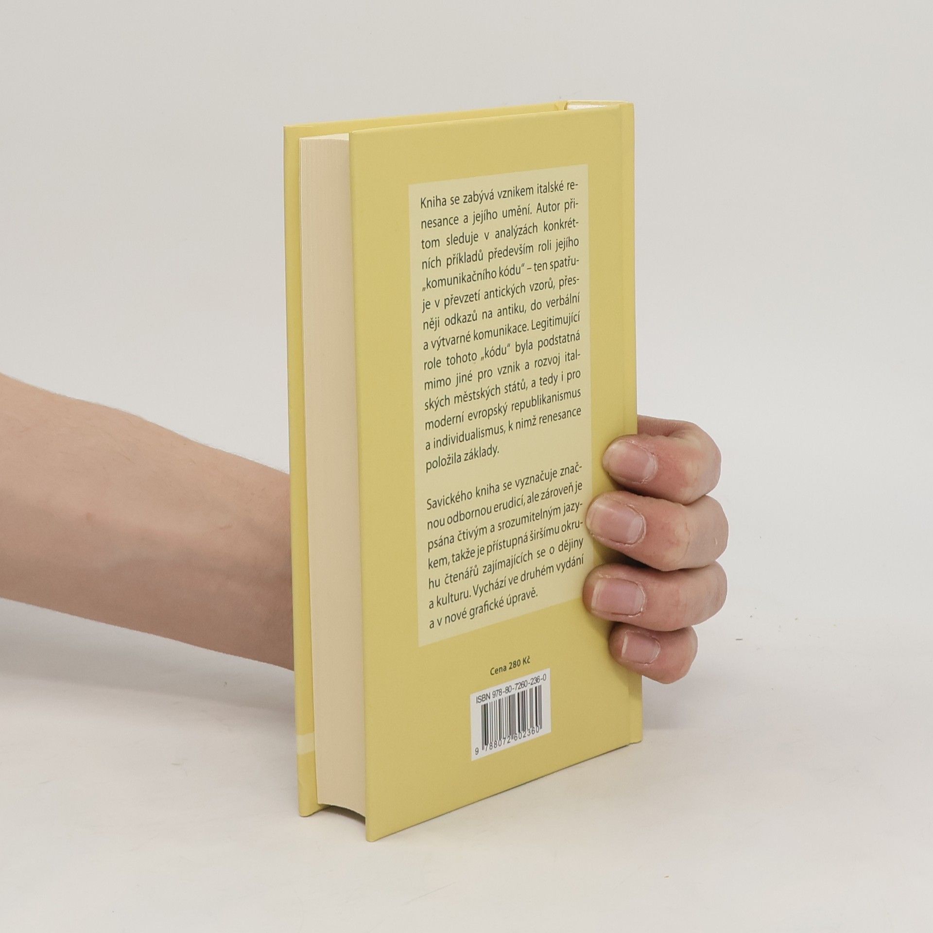 Podtitul: O komunikaci slovem a obrazem v italském rinascimento Kniha se zabývá vznikem italské renesance a jejího umění. Autor přitom sleduje v analýzách konkrétních příkladů především roli jejího „komunikačního kódu“ – ten spatřuje v převzetí antických vzorů, přesněji odkazů na antiku, do verbální a výtvarné komunikace. Legitimující role tohoto „kódu“ byla podstatná mimo jiné pro vznik a rozvoj italských městských států, a tedy i pro moderní evropský republikanismus a individualismus, k nimž renesance položila základy. Savického kniha se vyznačuje značnou odbornou erudicí, ale zároveň je psána čtivým a srozumitelným jazykem, takže je přístupná širšímu okruhu čtenářů zajímajících se o dějiny a kulturu. Vychází ve druhém vydání a v nové grafické úpravě.