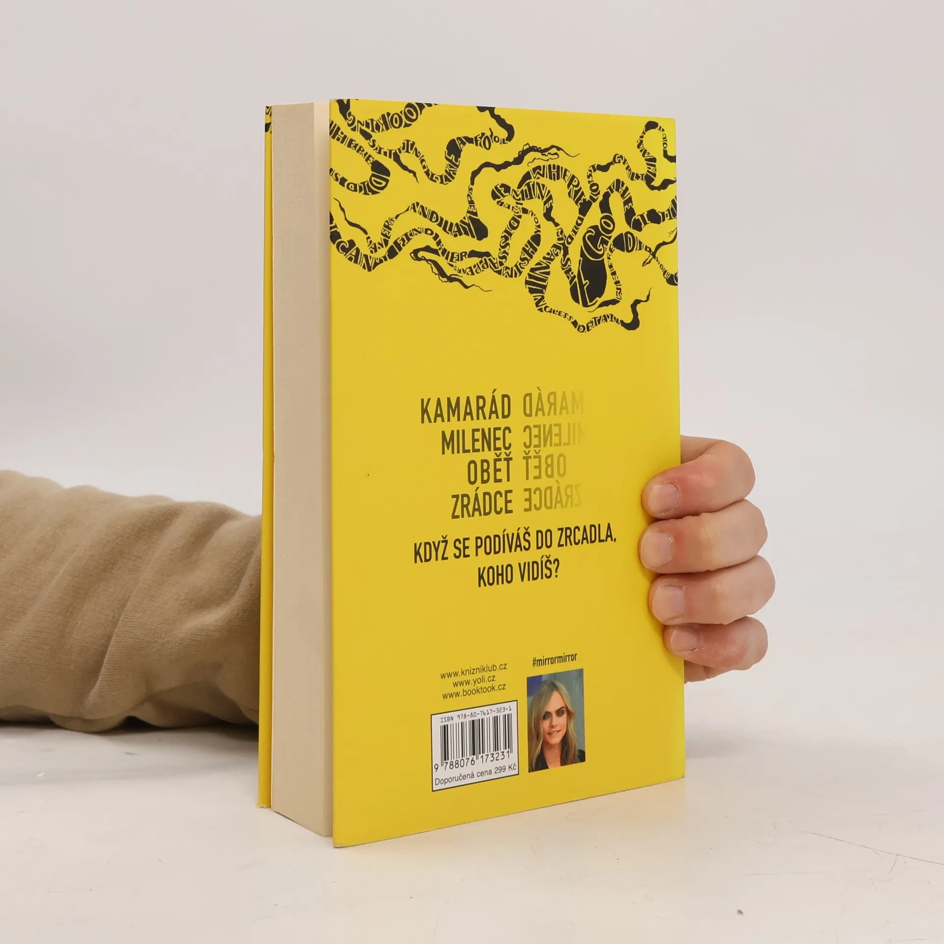 KAMARÁD, MILENKA, OBĚŤ, ZRÁDCE. Když se podíváš do zrcadla, koho vidíš? Debutový román supermodelky a herečky Cary Delevingne. Šestnáctiletí kamarádi Zrzi, Leo, Rose a Naomi tak docela mezi své vrstevníky nezapadají. Stále ještě nepřišli na to, kým chtějí být. Jejich život není dokonalý, ale spojuje je muzika a jejich kapela Zrcadlo, zrcadlo… Až do chvíle, kdy Naomi zmizí a po pár týdnech pátrání je vytažena z řeky v bezvědomí. Naomi v kómatu bojuje o život. Policie tvrdí, že to byl pokus o sebevraždu, její přátelé o tom však silně pochybují. Probere se Naomi někdy? Co její stav zavinilo? A jak je možné, že si Zrzi, samozvaná ochránkyně skupiny, nevšimla varovných signálů? Každý se se složitou situací vyrovnává po svém. Zatímco Rose se opíjí na večírcích a Lea obestírají temné nálady, Zrzi se rozhodne zjistit pravdu. Svět se jim rozpadá a odhaluje jejich nejtemnější tajemství. Nic už nikdy nebude jako dřív, protože když se zrcadlo rozbije, nejde ho nikdy úplně spravit.
