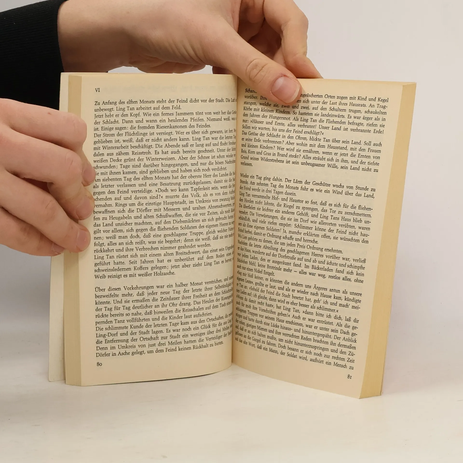 Epische Geschichte um einen im Text nicht direkt verorteten Krieg (Invasion Chinas durch die Japaner im Zweiten Weltkrieg) und seinen Einfluss auf die Familie des einfachen Bauern Ling Tan. Zu den Themen des Buches zählen neben den Kriegsgreueln auch das Durchbrechen patriarcher Vorurteile und ein Trend, den Analphabetismus hinter sich zu lassen.