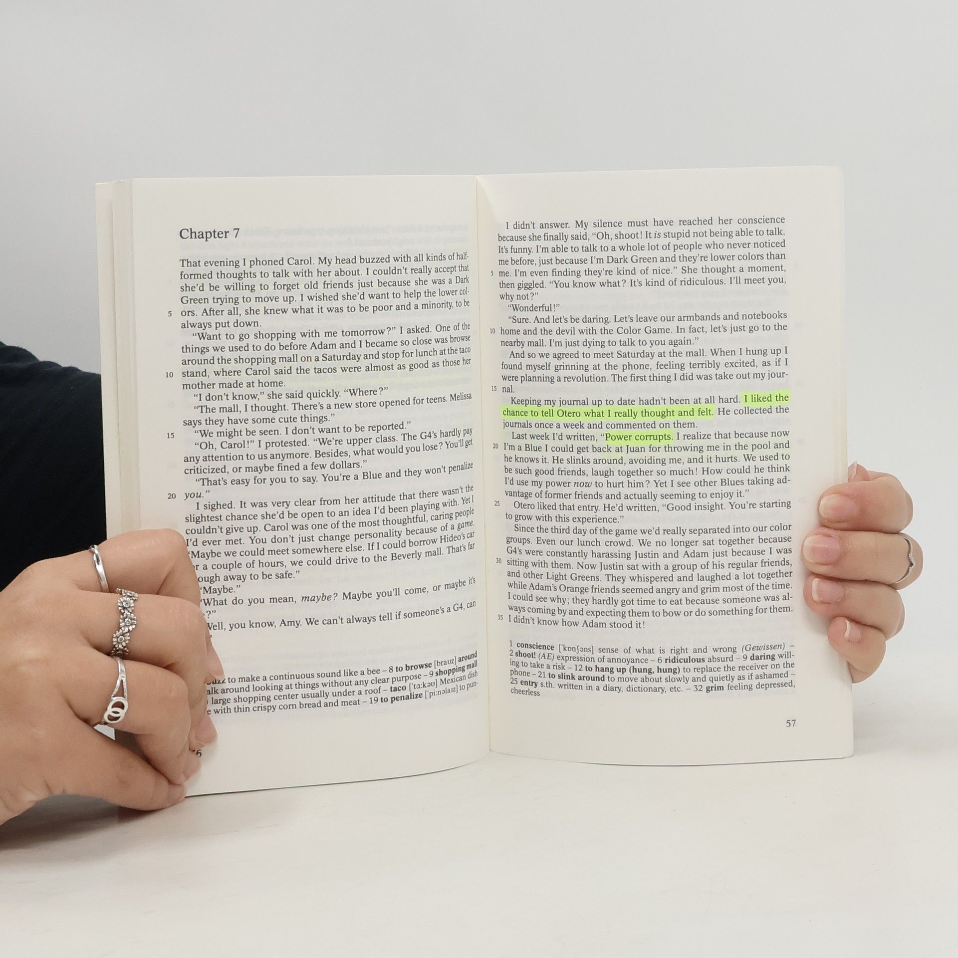 In diesem Jugendroman geht es um Klassen- und Rassenunterschiede in einer kalifornischen Stadt und die Art, wie sie die Beziehung zwischen Amy, einem Mädchen japanischer Abstammung, und Adam, upper-class WASP, beeinflussen. Die schon gespannte Beziehung wird weiteren Belastungen ausgesetzt, als der Lehrer Ray Otero das sogenannte color game mit seiner Klasse spielt. Abiturempfehlung zu den Themenbereichen Education und Race Relations
