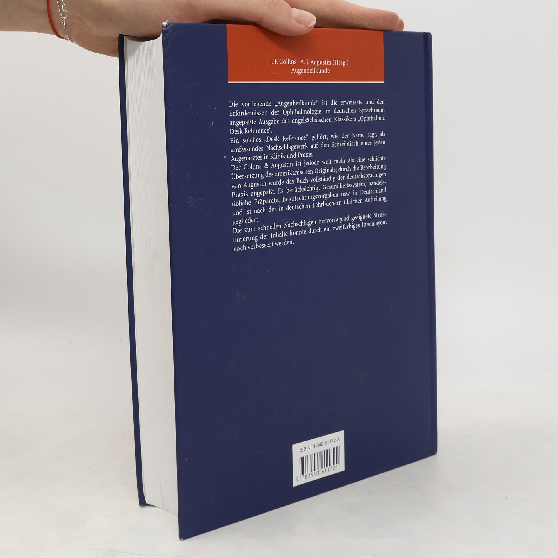 Wer den COLLINS kennt, macht keine Kompromisse. Ein Buch, das dieses einzigartige Standardwerk im deutschsprachigen Raum ersetzen will, mu besser sein als alle anderen.Diesen Anspruch erf llt "Augenheilkunde" durch die exzellente deutsche Bearbeitung von AUGUSTIN.Die gro en Pluspunkte des COLLINS/AUGUSTIN: - konsequente Orientierung an der deutschsprachigen Praxis und dem deutschen Gesundheitssystem- hervorragende Didaktik mit zweifarbigem Layout und bersichtlicher Gliederung nach der Systematik deutscher Lehrb cher- verbessertes Bildmaterial und komplett neue Abbildungen, berwiegend in Farbe- umfassende berarbeitung aller Kapitel mit grundlegenden Verbesserungen und Erweiterungen - auf IHRE Bed rfnisse zugeschnittenNur im COLLINS/AUGUSTIN: - ausf hrliche Ber cksichtigung der Begutachtung mit den aktuellen DOG-Richtlinien- gro er Differentialdiagnostik-Teil- umfangreiche Darstellung der Operationslehre- erweiterte Fassung der bereits im Original einzigartigen Datenzusammenstellung Labor-Ma e/NormenOrientieren Sie sich an dem neuen Standard in der Augenheilkunde!