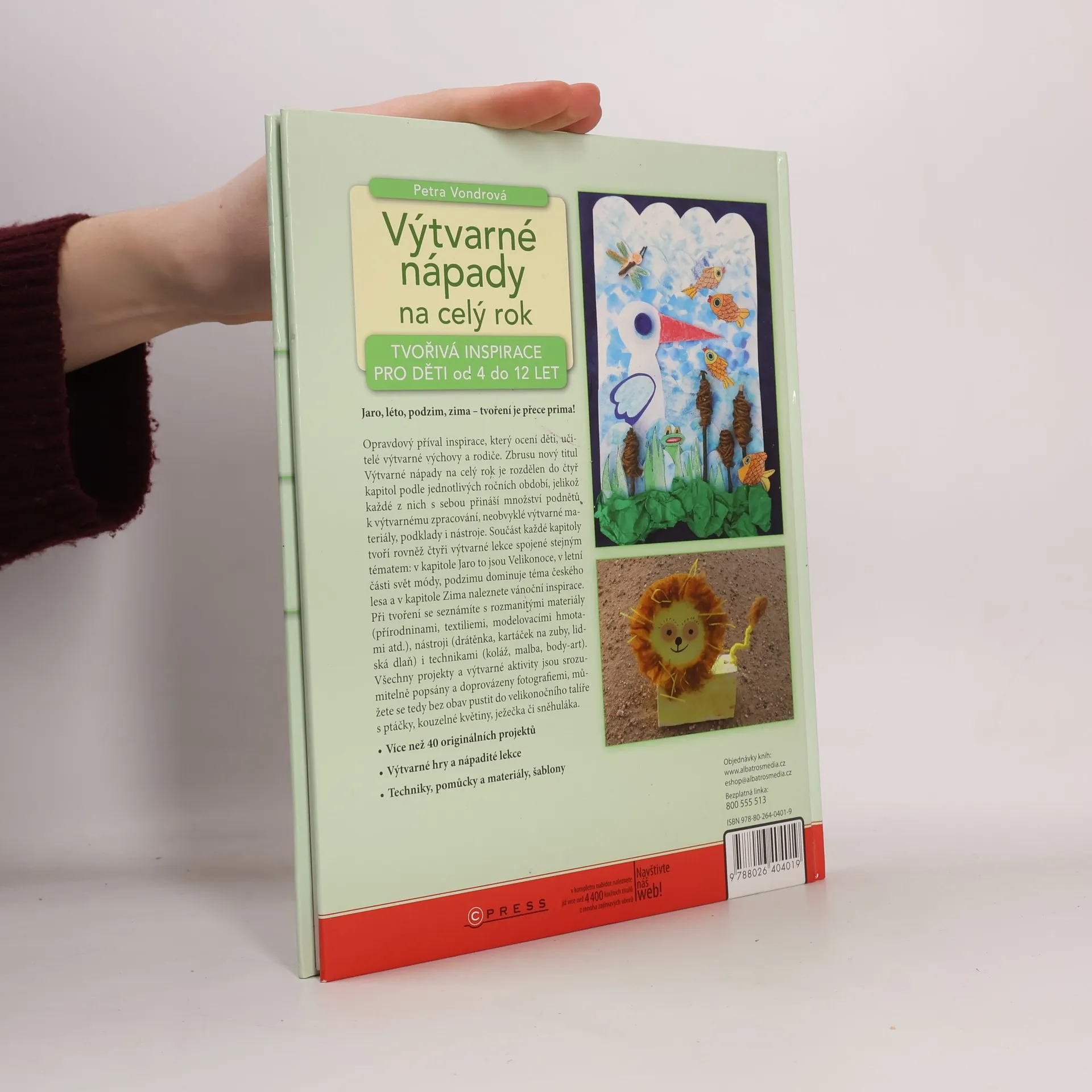 Opravdový příval inspirace, který ocení děti, rodiče a učitelé výtvarné výchovy. Titul Výtvarné nápady na celý rok je rozdělen do čtyř kapitol podle jednotlivých ročních období, jelikož každé z nich s sebou přináší množství podnětů k výtvarnému zpracování, neobvyklé výtvarné materiály, podklady i nástroje. Součást každé kapitoly tvoří rovněž výtvarné lekce spojené stejným tématem: v kapitole Jaro to jsou Velikonoce, v letní části svět módy, podzimu dominuje téma českého lesa a zimní části pak Vánoce.