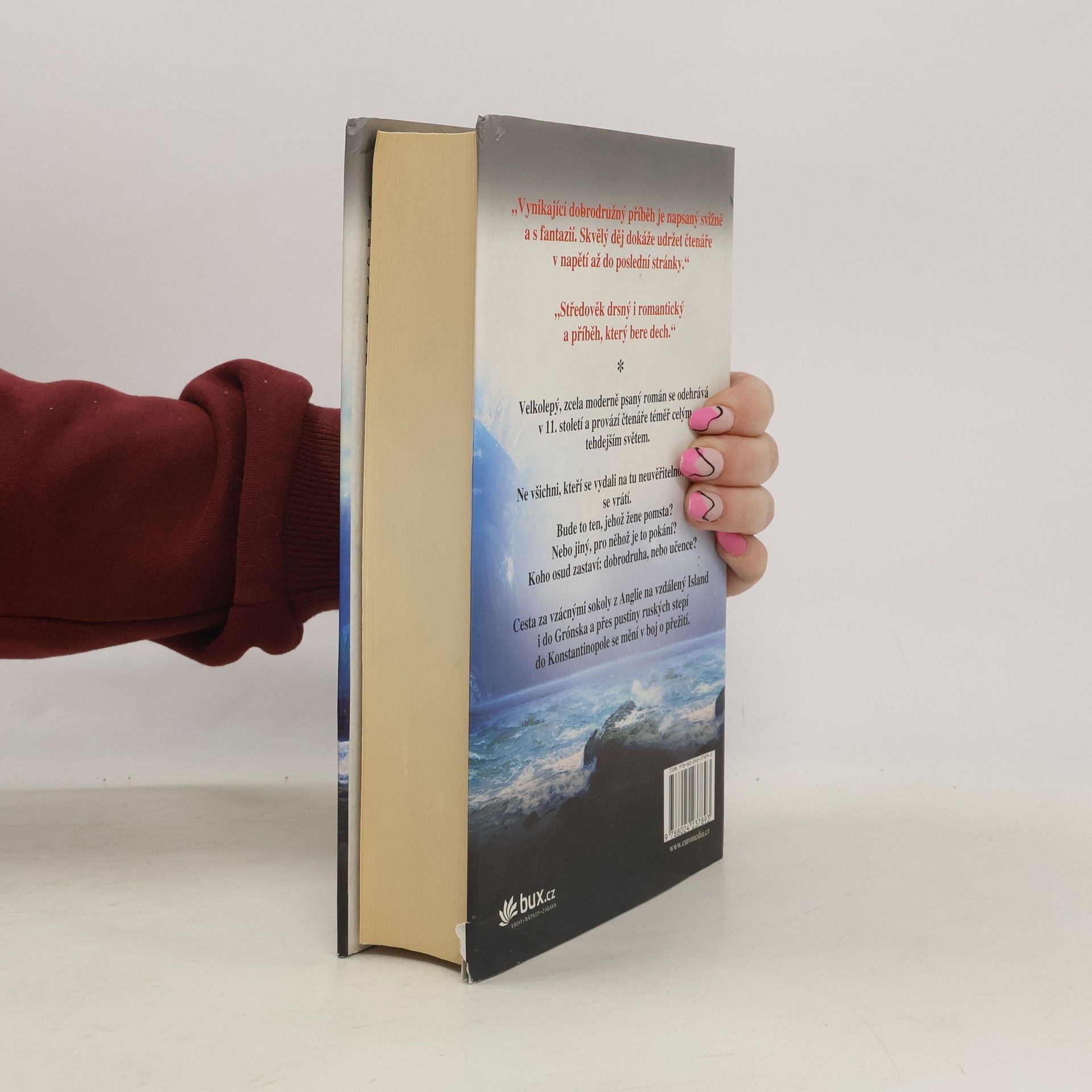 Velkolepý, zcela moderně psaný román se odehrává v 11. století a provází čtenáře téměř celým tehdejším světem. Francouzský žoldák přijme od anglického šlechtice nabídku, aby se vydal do Konstantinopole zachránit jeho syna, který je tam držen jako rukojmí. Mladý rytíř bude propuštěn výměnou za šest mimořádných dravých ptáků, bílých sokolů. Ze všeho nejdříve Vallon míří se svými společníky do Norska, pak putuje přes Grónsko a Rusko k svému cíli. Na dlouhé cestě ho provází řada výrazných postav, například sokolník se schopností porozumět divokým zvířatům nebo nebývale vzdělaný student lékařství, který s sebou tajně nese dokumenty, jež mají vést k objevení pátého evangelia. Vynikající dobrodružný příběh je napsaný svižně a s fantazií. Skvělý děj dokáže udržet čtenáře v napětí až do poslední stránky.