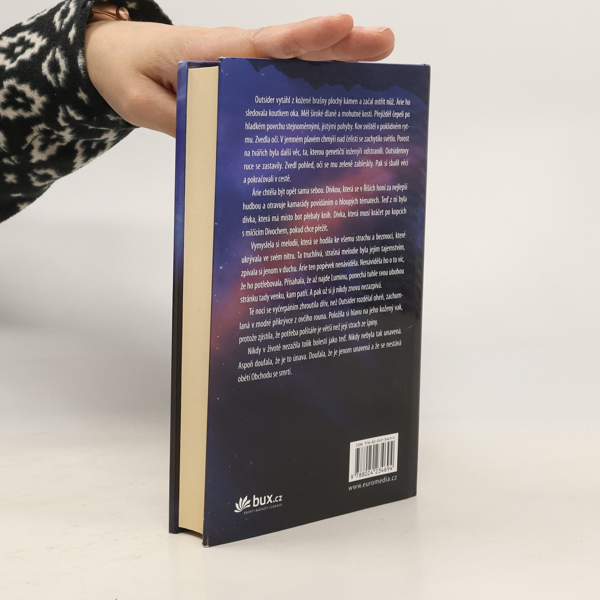 První díl futuristické postapokalyptické trilogie na pomezí fantasy, romance a dobrodružného příběhu. Hlavní hrdinové, Aria a Perry, pocházejí ze dvou radikálně odlišných společenských vrstev a vlastně by se neměli nikdy setkat, natož navázat vztah. Aria patří mezi obyvatele uzavřeného, vysoce technicky rozvinutého a izolovaného města, Perry zase do nebezpečného přírodního světa. Když Ariu vykáží z města za zločin, který nespáchala, domnívá se, že ji čeká okamžitá smrt – ve volné přírodě nemá šanci přežít. „Divoch“ Perry je pro ni jedinou šancí, jak se zachránit. Zakázaná láska a rozpolcená civilizace vzbuzuje mnoho filozofických, morálních a etických dilemat zrcadlících se v neobyčejném vztahu dvou hlavních hrdinů. -- 1. vydání.