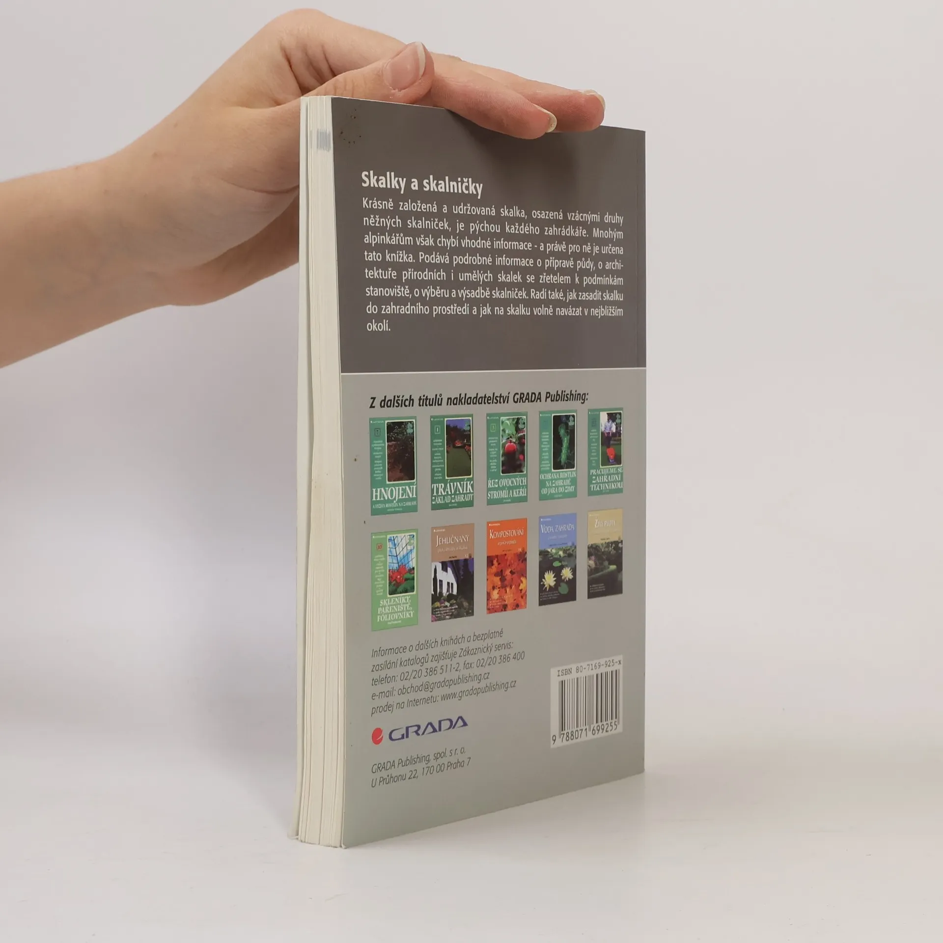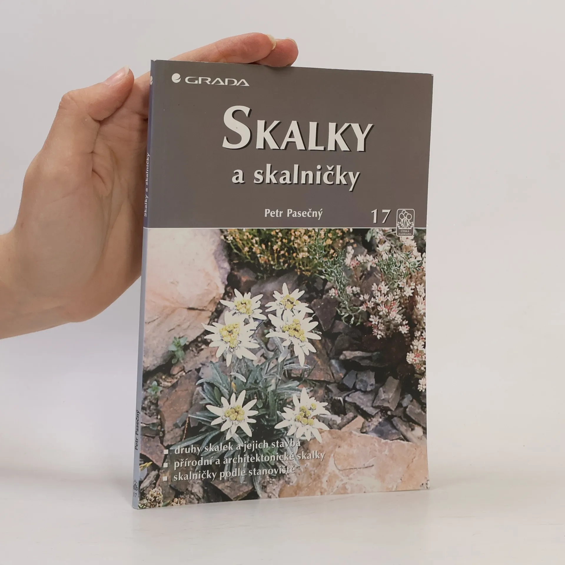 Praktické rady jak vytvořit skalku a jak o ni pečovat. Kniha podává podrobné informace o druzích skalek, jejich stavbě a estetických zákonitostech, které by měly skalky splňovat. Autor poradí při výběru vhodného umístění, přípravě půdy a podstatnou část textu věnuje rostlinám pěstovaným na skalkách a faktorům, které ovlivňují jejich správný růst. Kniha je doplněna řadou barevných fotografií, přehledných nákresů a rejstříkem latinských názvů druhů a kultivarů. 107 stran a 25 stran barevné přílohy.