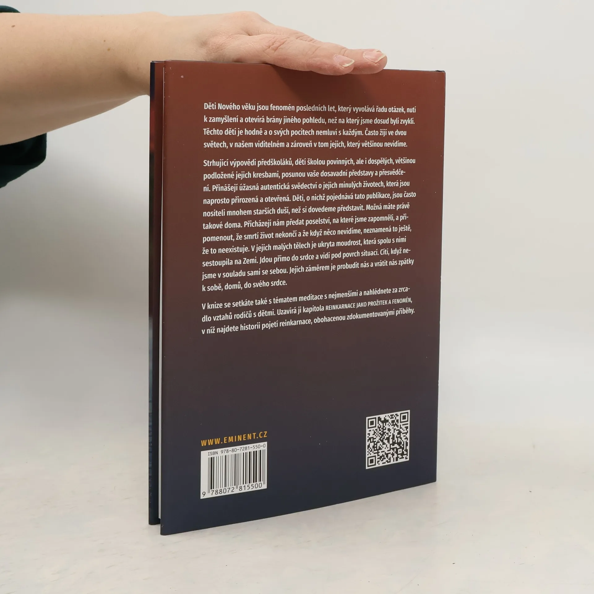 Děti Nového věku jsou fenomén posledních let, který vyvolává řadu otázek, nutí k zamyšlení a otevírá brány jiného pohledu, než na který jsme dosud byli zvyklí. Těchto dětí je hodně a o svých pocitech nemluví s každým. Často žijí ve dvou světech, v našem viditelném a zároveň v tom jejich, který většinou nevidíme. Strhující výpovědi předškoláků, dětí školou povinných, ale i dospělých, většinou podložené jejich kresbami, posunou vaše dosavadní představy a přesvědčení. Přinášejí úžasná autentická svědectví o jejich minulých životech, která jsou naprosto přirozená a otevřená. Děti, o nichž pojednává tato publikace, jsou často nositeli mnohem starších duší, než si dovedeme představit. Možná máte právě takové doma. Přicházejí nám předat poselství, na které jsme zapomněli, a připomenout, že smrtí život nekončí a že když něco nevidíme, neznamená to ještě, že to neexistuje. V jejich malých tělech je ukryta moudrost, která spolu s nimi sestoupila na Zemi. Jdou přímo do srdce a vidí pod povrch situací. Cítí, když nejsme v souladu sami se sebou. Jejich záměrem je probudit nás a vrátit nás zpátky k sobě, domů, do svého srdce. V knize se setkáte také s tématem meditace s nejmenšími a nahlédnete za zrcadlo vztahů rodičů s dětmi. Uzavírá ji kapitola Reinkarnace jako prožitek a fenomén, v níž najdete historii pojetí reinkarnace, obohacenou zdokumentovanými příběhy.