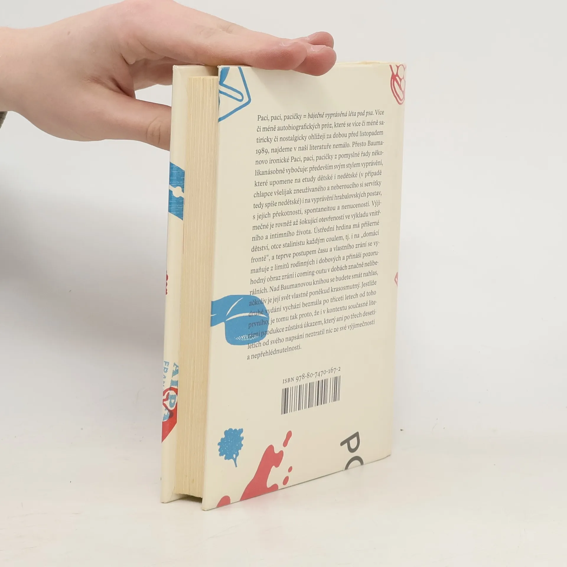 Paci, paci, pacičky = báječně vyprávěná léta pod psa. Více či méně autobiografických próz, které se více či méně satiricky či nostalgicky ohlížejí za dobou před listopadem 1989, najdeme v naší literatuře nemálo. Přesto Baumanovo ironické Paci, paci, pacičky z pomyslné řady několikanásobně vybočuje: především svým stylem vyprávění, které upomene na etudy dětské i nedětské (v případě chlapce všelijak zneužívaného a neberoucího si servítky tedy spíše nedětské) i na vyprávění hrabalovských postav, s jejich překotností, spontaneitou a nenuceností. Výjimečné je rovněž až šokující otevřeností ve výkladu vnitřního a intimního života. Ústřední hrdina má příšerné dětství, otce stalinistu každým coulem, tj. i na „domácí frontě“, a teprve postupem času se vymaňuje z limitů rodinných i dobových a přináší pozoruhodný obraz vlastního zrání i coming-outu v dobách značně neliberálních. Nad Baumanovou knihou se budete smát nahlas, ačkoliv je její svět vlastně poněkud krasosmutný. Jestliže druhé vydání vychází bezmála po třiceti letech od toho prvního, je tomu tak proto, že i v kontextu současné literární produkce zůstává úkazem, který ani po třech desetiletích od svého napsání neztratil nic ze své výjimečnosti a nepřehlédnutelnosti.