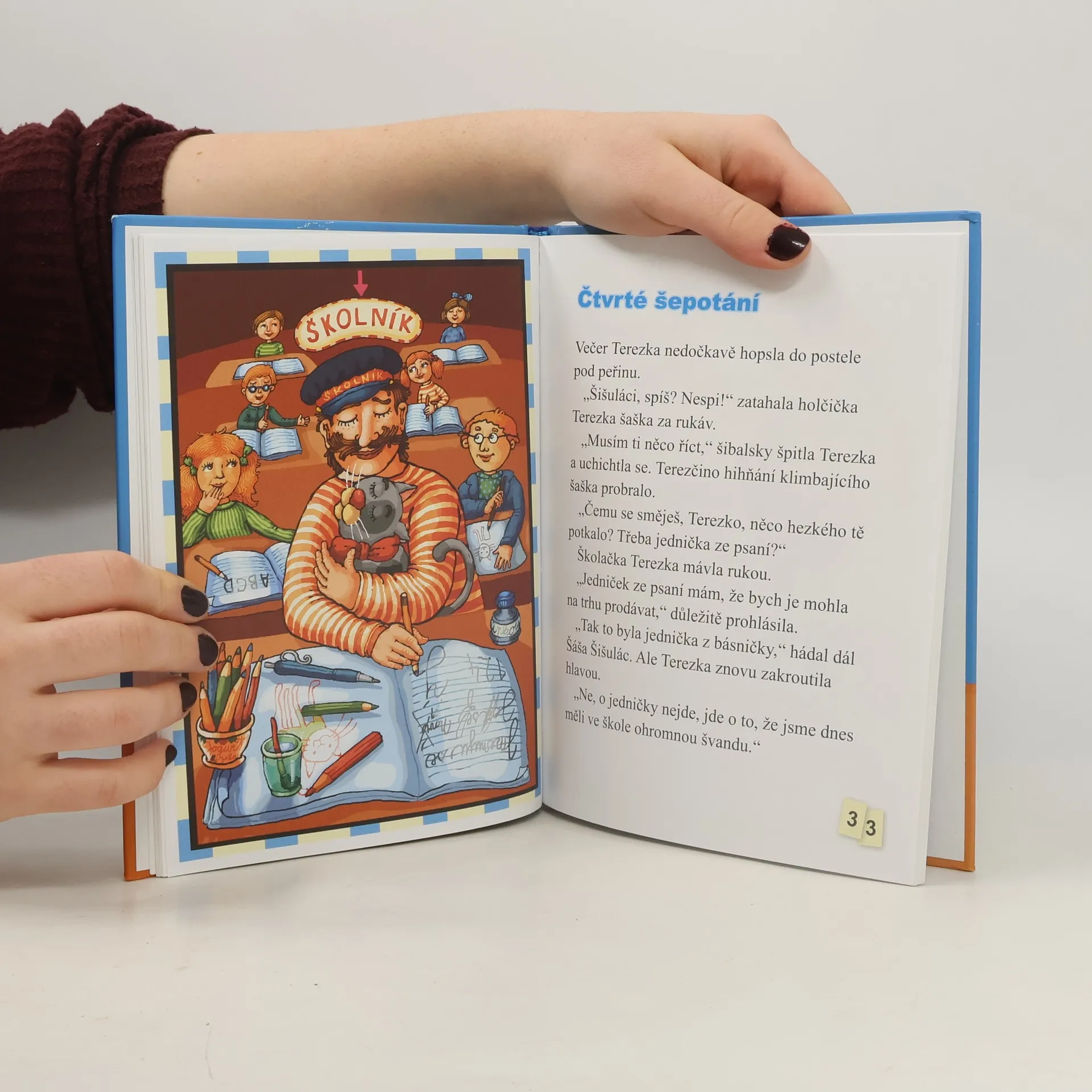 Šáša Šišulác je látkový kamarád malé školačky Terezky. Večer před usnutím mu Terezka říká své první zážitky ze školy a on jí na oplátku šeptá šepotání - pohádky ze světa dětí, věcí i pohádkových bytostí. V krátkých pohádkových příbězích pro začínající čtenáře nejen že ožívají obyčejné věci jako školní aktovky nebo kopačky, ale vystupují a čarují tu také skřítkové Bukvínek, Zlobílek a Kokokovaříček a čarodějnice Kaňatá. Texty doprovázejí výpravné ilustrace Magdy Veverkové Hrnčířové.