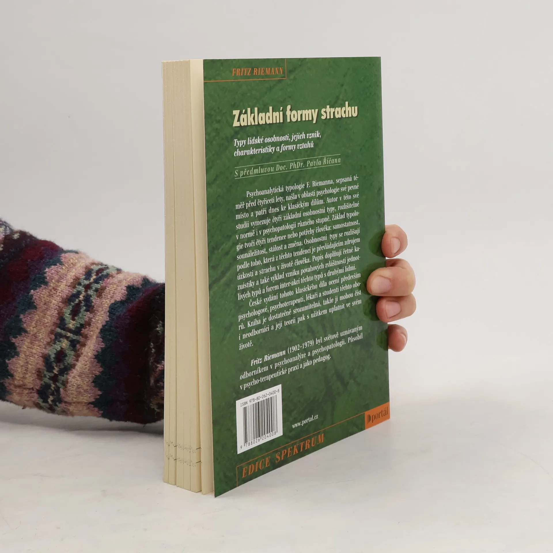 Typy lidské osobnosti, jejich vznik, charakteristiky a formy vztahů. Opětovné vydání psychoanalytické typologie F. Riemanna, jež byla sepsána téměř před čtyřiceti lety, dnes patří ke klasickým dílům, jež si našla v oblasti psychologie své pevné místo. Studie podává vymezení čtyř základních osobnostních typů, rozlišitelných v normě i v psychopatologii různého stupně. Základ typologie tvoří čtyři potřeby či tendence člověka - potřeba samostatnosti, sounáležitosti, stálosti a změny. Osobnostní typy se pak liší tím, která z těchto tendencí je převládajícím zdrojem úzkosti a strachu v životě člověka. Popis doplňují četné kasuistiky, výklad vzniku a povahové zvláštnosti typů či formy interakcí jednotlivých typů s druhými lidmi.