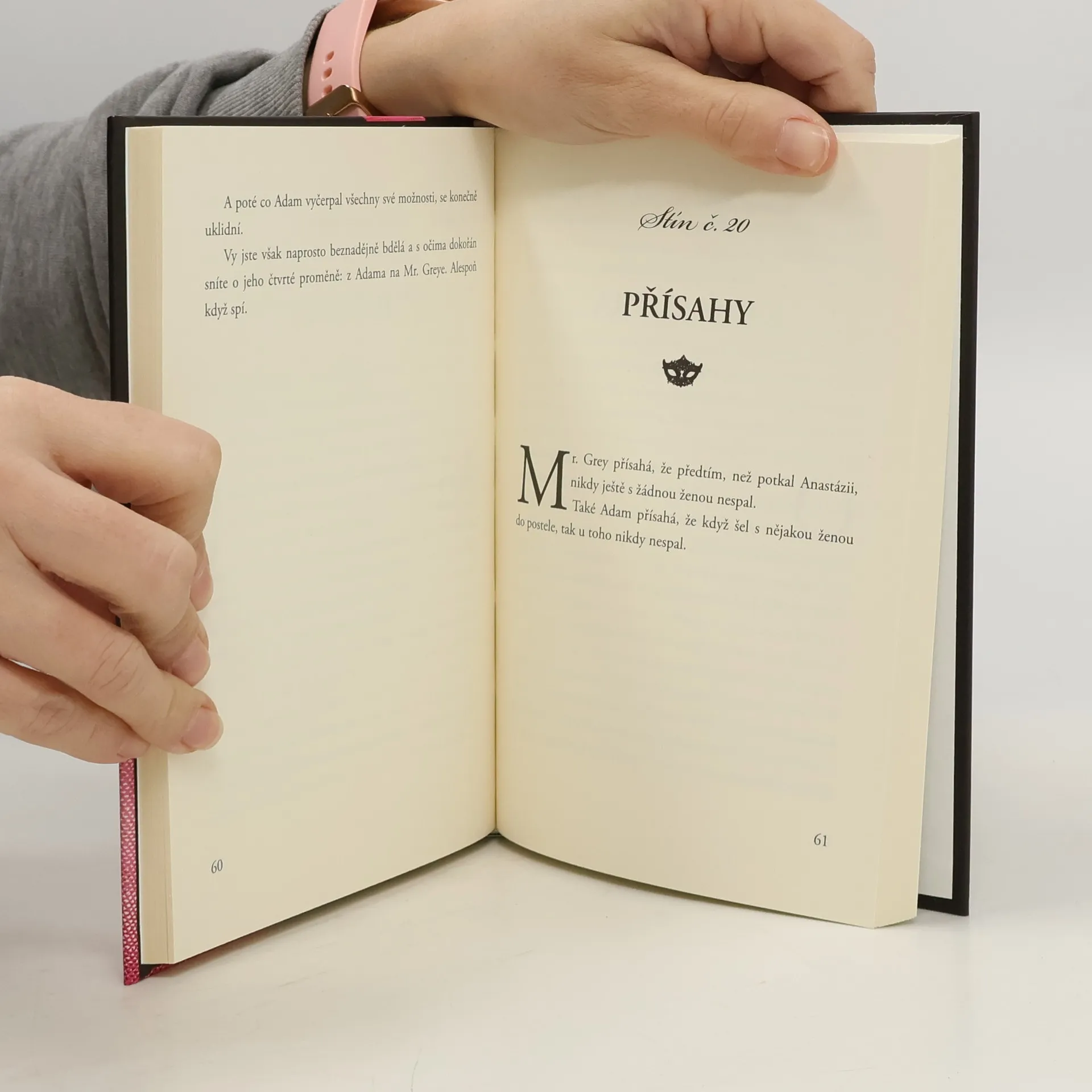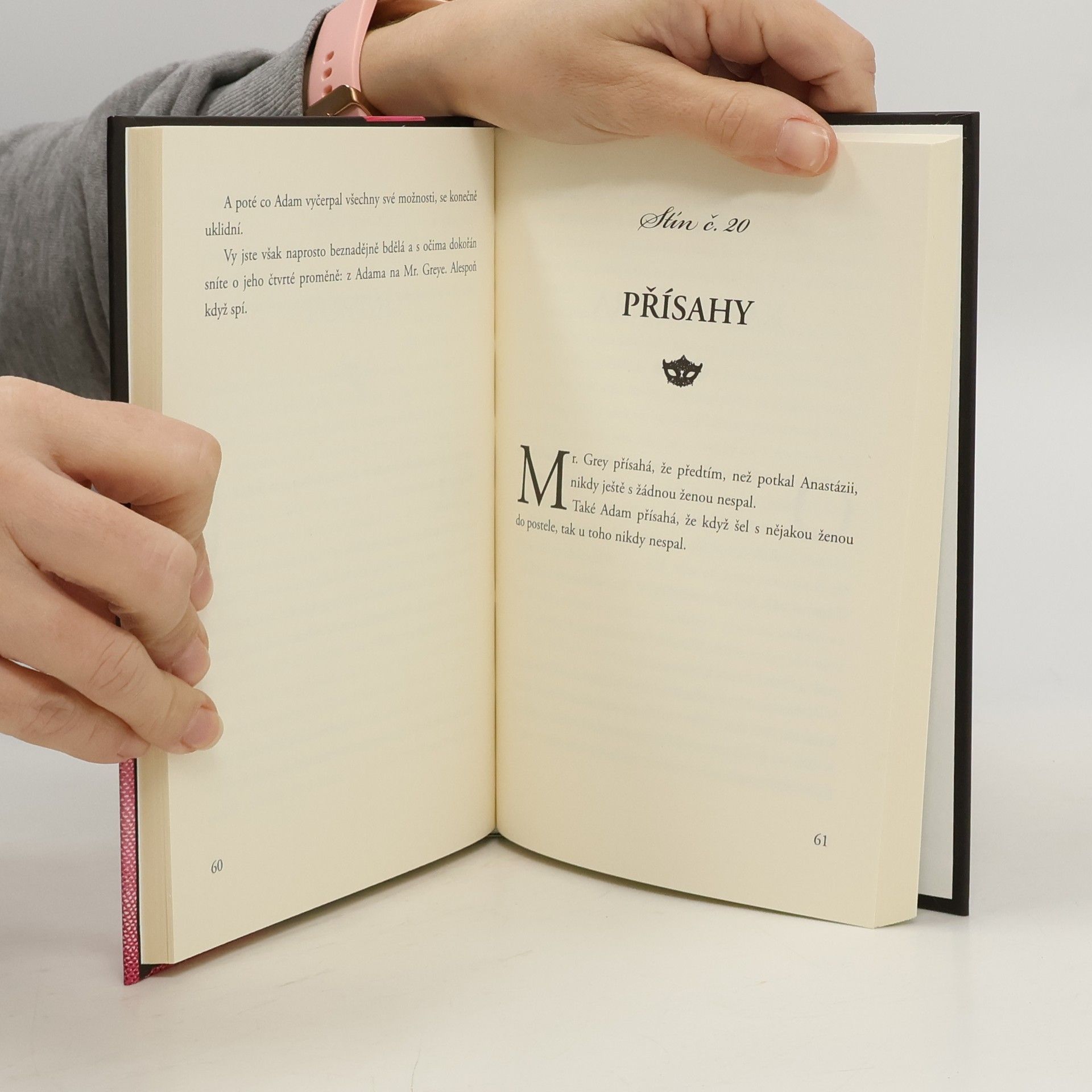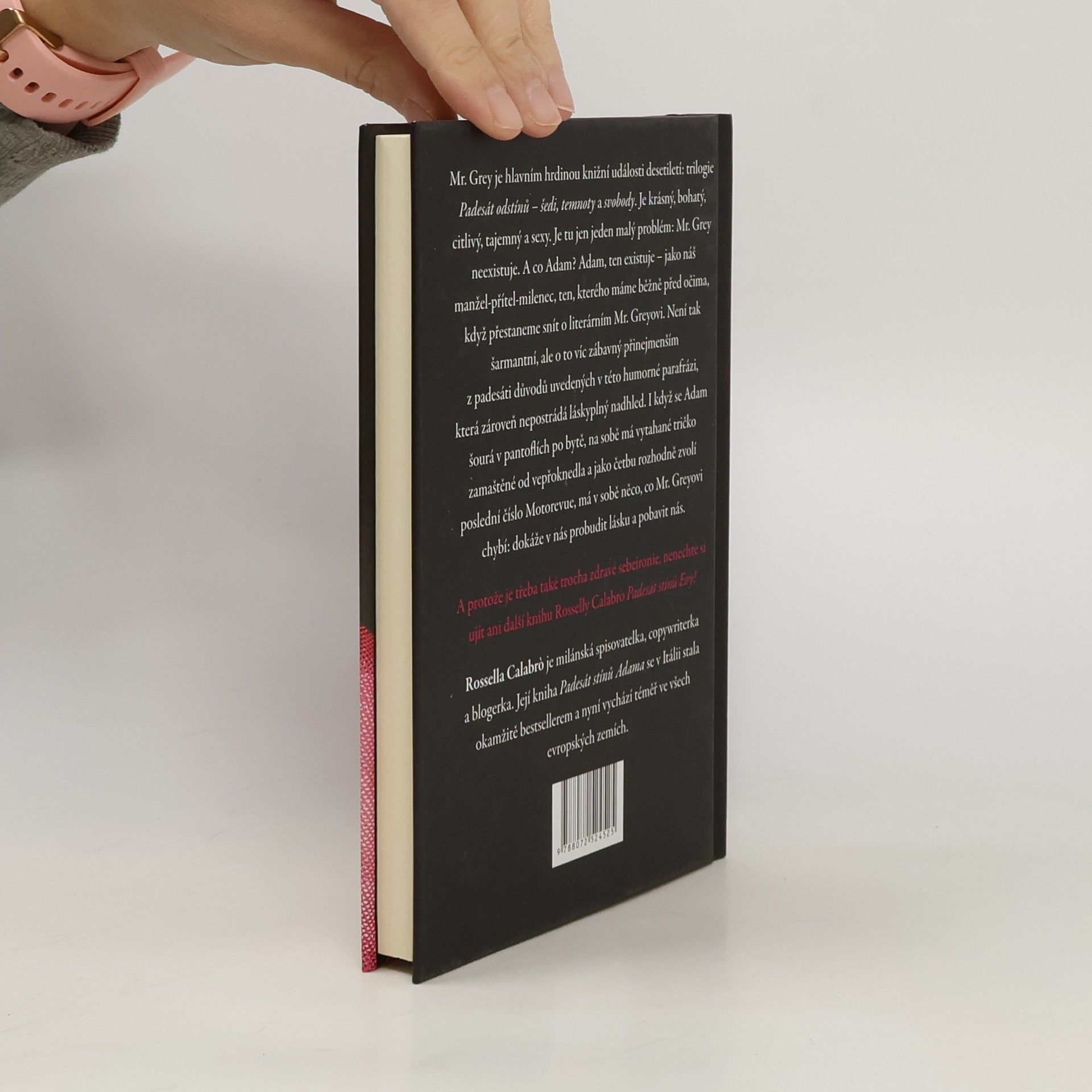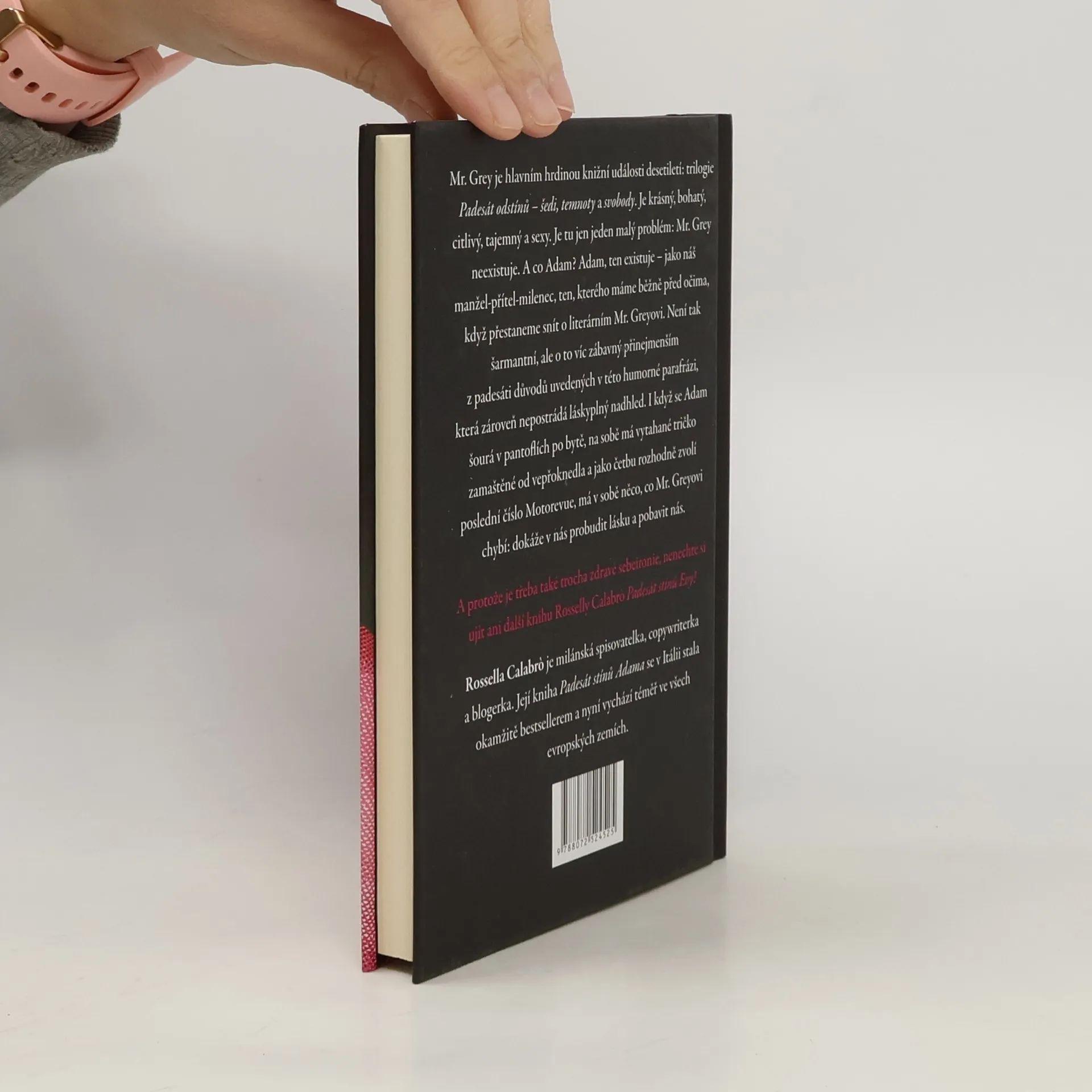 Mr. Grey je krásný, bohatý, citlivý, tajemný a sexy. Zato Adam představuje našeho manžela, milence, přítele... Tato humorná parafráze však nepostrádá láskyplný nadhled. Mr. Grey je krásný, bohatý, citlivý, tajemný a sexy. Je hlavním hrdinou knižní události desetiletí: trilogie Padesát odstínů - šedi, temnoty a svobody. Je tu jen jeden malý problém: Mr. Grey neexistuje. A co Adam? Adam ten existuje. Když Mr. Grey zdvořile konverzuje se svou milovanou, Adam předříká celou abecedu krkáním. Když se Mr. Grey chopí velení, Adam uchopí televizní ovladač. Když Mr. Grey preluduje srdcervoucí tóny na klavíru, našinec Adam se láskyplně dloube v nose na gauči. Adam je prostě náš manžel-přítel-milenec, ten, kterého máme běžně před očima, když přestaneme snít o literárním Mr. Greyovi. Není tak šaramantní, ale o to víc zábavný alespoň z padesáti důvodů, uvedených v této veselé knížce. Protože, i když se Adam šourá v pantoflích po bytě a na sobě má vytahané tričko zamaštěné od vepřoknedla a jako četbu rozhodně zvolí poslední číslo Motorevue, má v sobě něco, co Mr. Greyovi chybí: dokáže v nás probudit lásku a pobavit nás. Takže poté, co jsme jedním dechem přečetly celou trilogii E. L. Jamesové, jsme si položily otázku, kdo že je ten mužský exemplář, který hlasitě chrápe po našem boku? Tato kniha nám to pomůže odhalit a hlavně nás pobaví, protože nakonec smích je všeobecně tou nejerotičtější pomůckou.