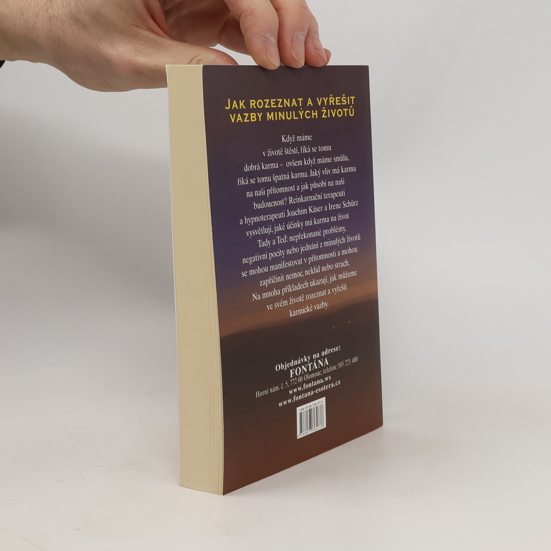 Jak rozeznat a vyřešit vazby minulých životů? Když máme v životě štěstí, říká se tomu dobrá karma - ovšem když máme smůlu, říká se tomu špatná karma. Jaký vliv má karma na naši přítomnost a jak působí na naši budoucnost? Reinkarnační terapeuti a hypnoterapeuti Joachim Käser a Irene Schürz vysvětlují, jaké účinky má karma na život Tady a Teď: nepřekonané problémy, negativní pocity nebo jednání z minulých životů se mohou manifestovat v přítomnosti a mohou zapříčinit nemoc, neklid nebo strach. Na mnoha příkladech ukazují, jak můžeme ve svém životě rozeznat a vyřešit karmické vazby.