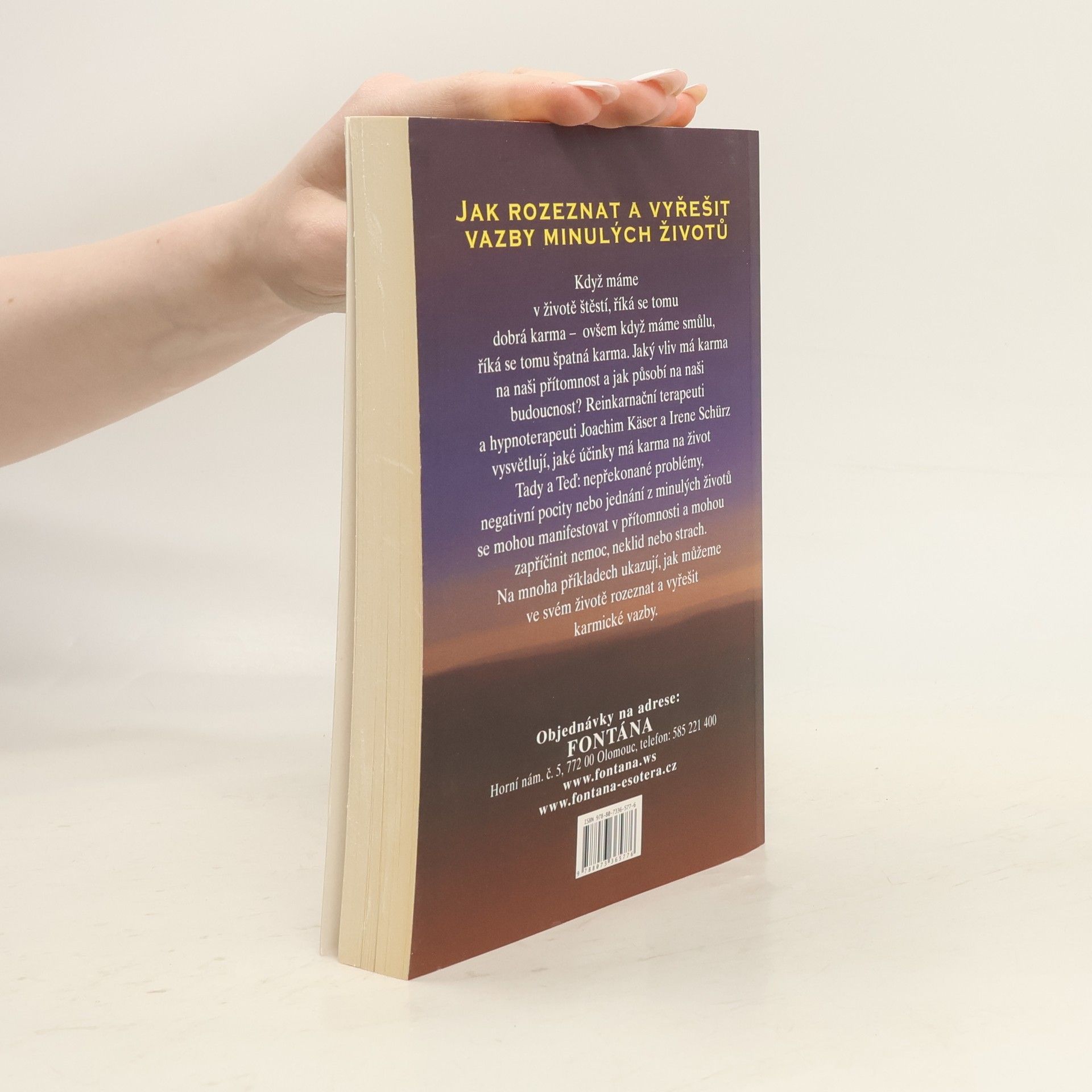 Jak rozeznat a vyřešit vazby minulých životů? Když máme v životě štěstí, říká se tomu dobrá karma - ovšem když máme smůlu, říká se tomu špatná karma. Jaký vliv má karma na naši přítomnost a jak působí na naši budoucnost? Reinkarnační terapeuti a hypnoterapeuti Joachim Käser a Irene Schürz vysvětlují, jaké účinky má karma na život Tady a Teď: nepřekonané problémy, negativní pocity nebo jednání z minulých životů se mohou manifestovat v přítomnosti a mohou zapříčinit nemoc, neklid nebo strach. Na mnoha příkladech ukazují, jak můžeme ve svém životě rozeznat a vyřešit karmické vazby.
