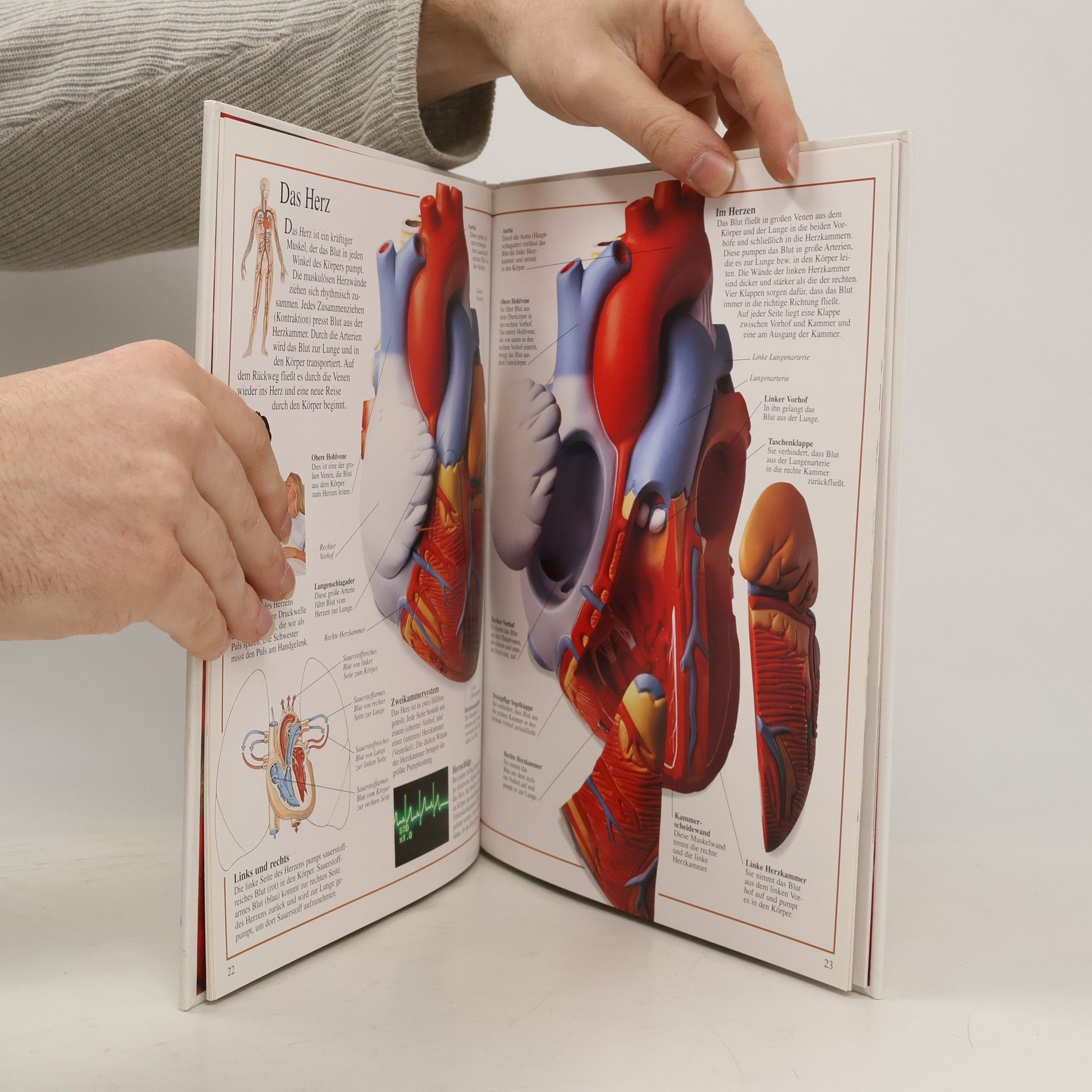 Detailreiche Fotografien und Zeichnungen sowie kurze informative Texte zeigen das Innere des menschlichen Körpers