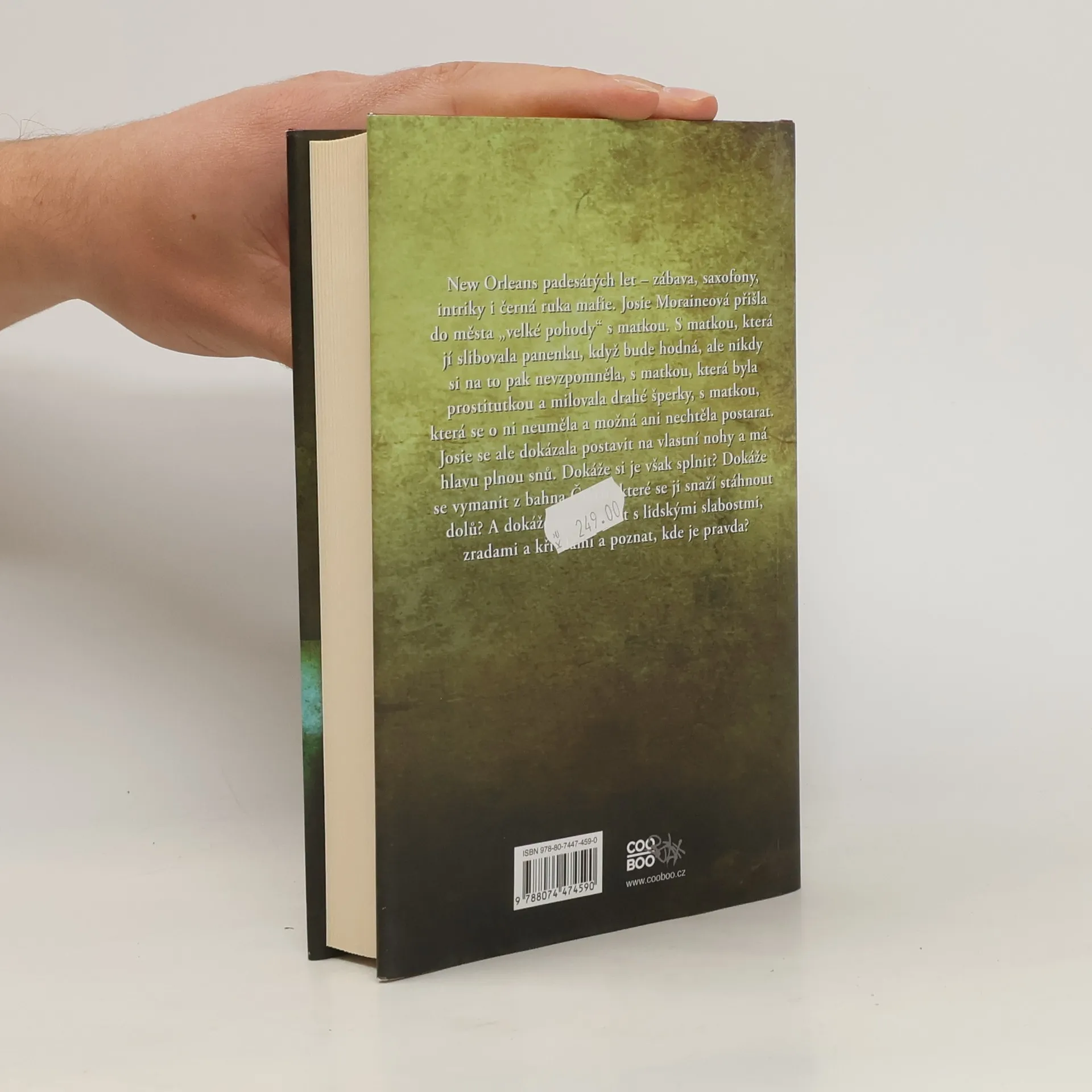 New Orleans padesátých let – zábava, saxofony, intriky i černá ruka mafie. Josie Moraineová přišla do města „velké pohody“ s matkou. S matkou, která jí slibovala panenku, když bude hodná, ale nikdy si na to pak nevzpomněla, s matkou, která byla prostitutkou a milovala drahé šperky, s matkou, která se o ni neuměla a možná ani nechtěla postarat. Josie se ale dokázala postavit na vlastní nohy a má hlavu plnou snů. Dokáže si je však splnit? Dokáže se vymanit z bahna Čtvrti, které se jí snaží stáhnout dolů? A dokáže se vyrovnat s lidskými slabostmi, zradami a křivdami a poznat, kde je pravda? Další kniha od autorky světově uznávaného románu V šedých tónech, která vás nenechá chladnými, s postavami, které vám budou ožívat před očima. Ruta Sepetysová svou druhou knihou dokázala spisovatelsky vyspět a právem se zařadila mezi významné autory současnosti.