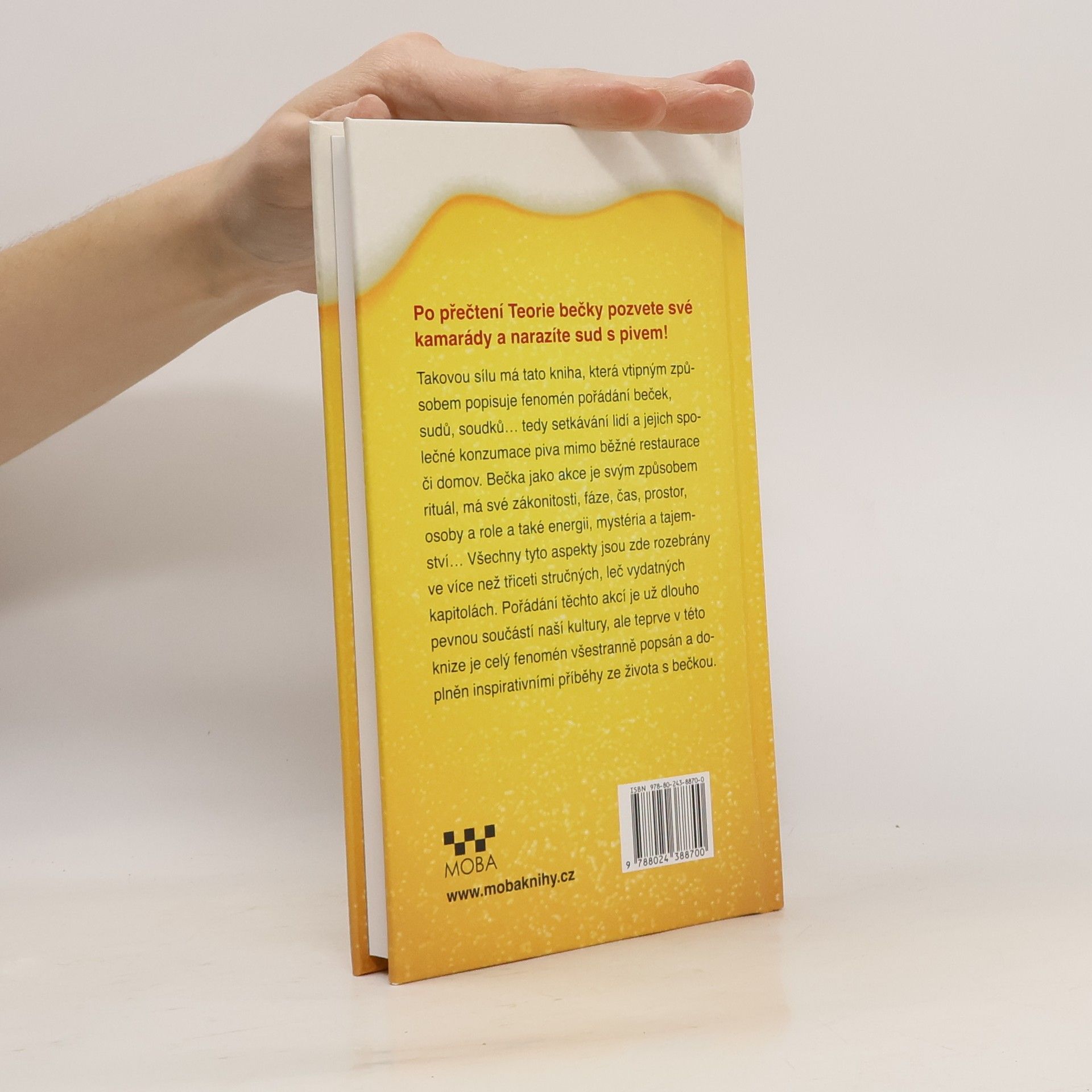 Po přečtení Teorie bečky pozvete své kamarády a narazíte sud s pivem! Takovou sílu má tato kniha, která vtipným způsobem popisuje český fenomén pořádání beček, sudů, soudků… tedy setkávání se lidí a jejich společné konzumace piva mimo běžné restaurace či domov. Bečka jako akce je svým způsobem rituál, má své zákonitosti, fáze, čas, prostor, osoby a role, a také energii, mystéria a tajemství… Všechny tyto aspekty jsou rozepsány ve více jak třiceti samostatných kapitolách. Pořádání těchto akcí je už dlouho pevnou součástí naší kultury, ale teprve v této knize je celý fenomén podrobně popsán.