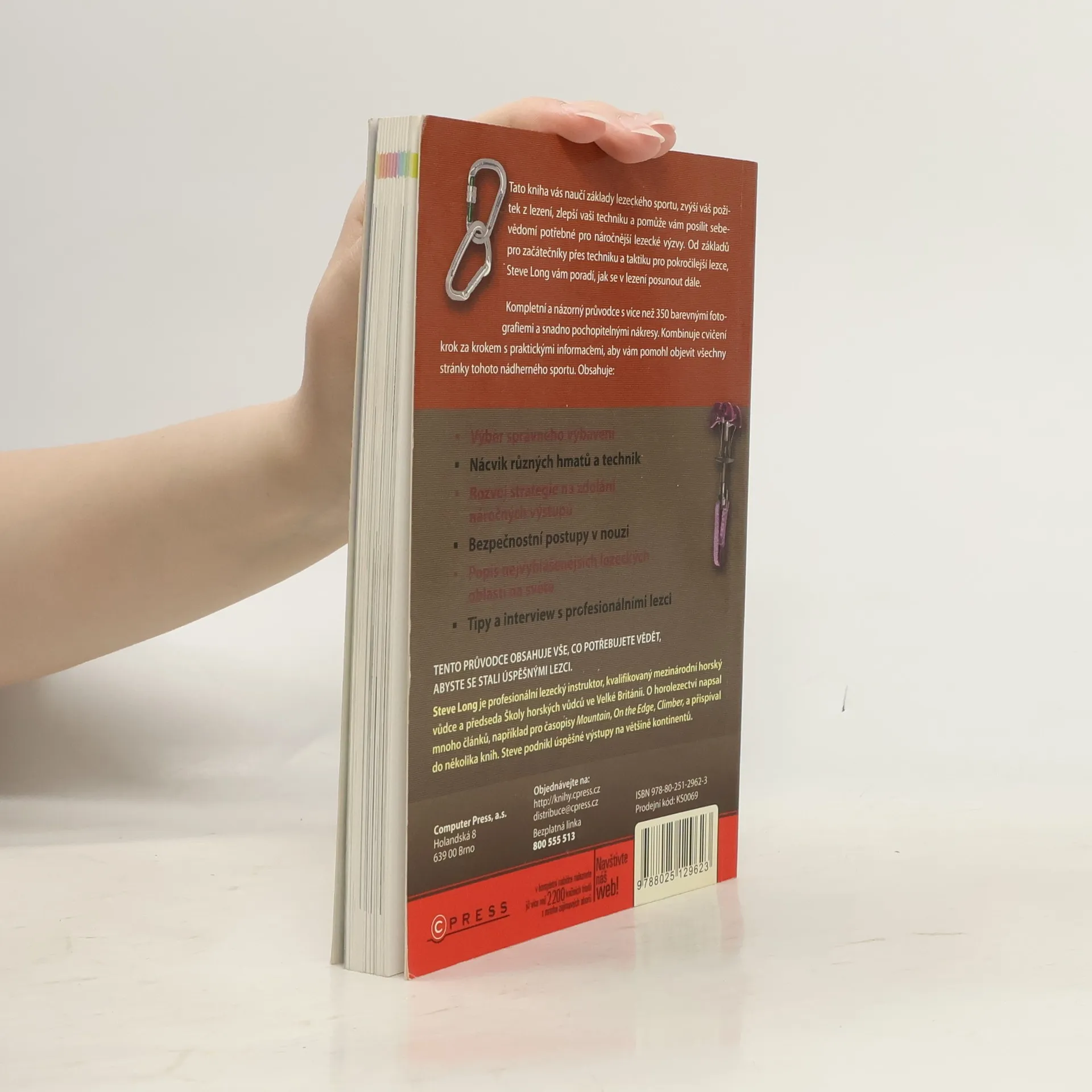 Tato kniha Vás naučí základy lezeckého sportu, zvýší Váš požitek z lezení, zlepší Vaši techniku a pomůže Vám zvýšit si sebevědomí potřebné náročnější lezecké výzvy. Od základů pro začátečníky přes techniku a taktiku pro pokročilejší lezce, Steve Long Vám poradí jak se posunout dále ve Vašem lezení Kompletní a názorný průvodce, s více než 350 barevnými fotografiemi a snadno pochopitelnými nákresy. Kombinuje cvičení krok za krokem s praktickými informacemi, aby Vám pomohl objevit všechny stránky tohoto nádherného sportu. Obsahuje: Výběr správného vybavení Nácvik různých hmatů a technik Rozvoj strategie na zdolání náročných výstupů Bezpečnostní postupy v nouzi Popis nejvyhlášenějších lezeckých oblastech na světě Tipy a interview s profesionálními lezci TENTO PRŮVODCE OBSAHUJE VŠE, CO POTŘEBUJETE VĚDĚT, ABYSTE SE STALI ÚSPĚŠNÝMI LEZCI.