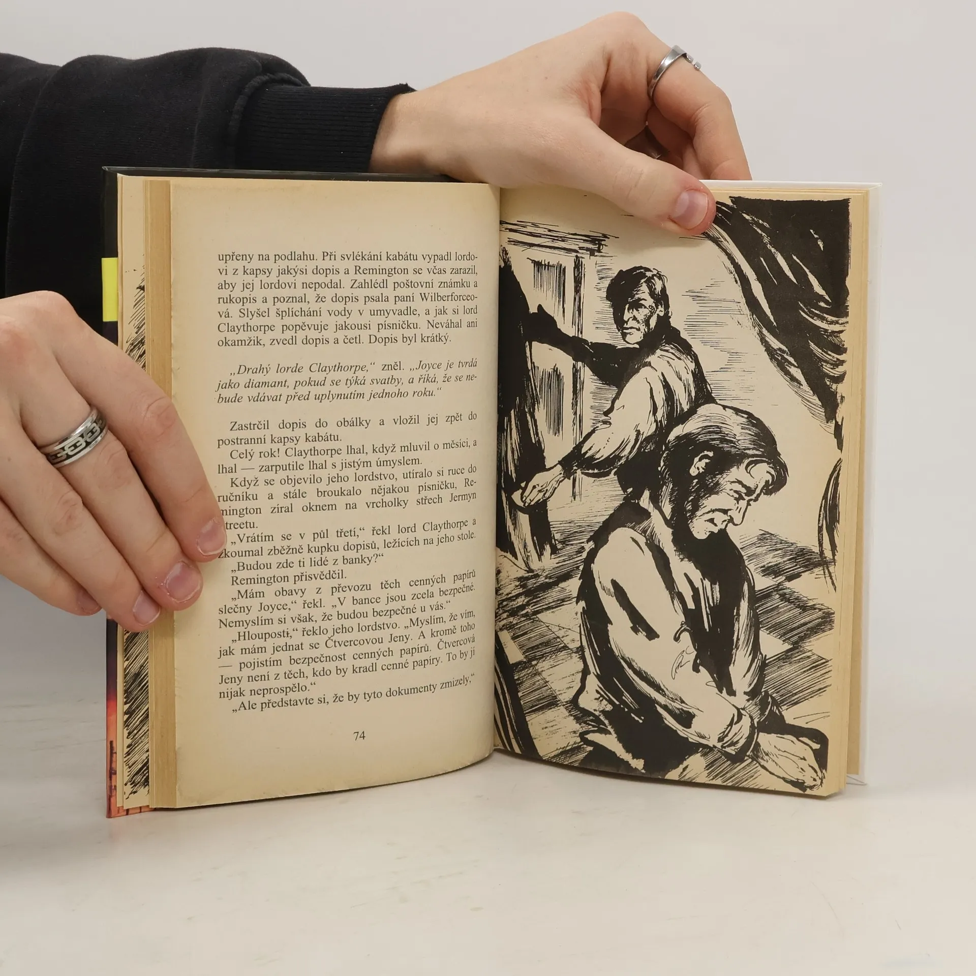 Klasická detektivka anglického autora z prostředí vyšší londýnské společnosti. Pověstná zlodějka působí poplach mezi londýnskými vysokými kruhy svými odvážnými loupežnými přepady, při kterých vždy mizí zlaté šperky. Vždycky jde o majetek jednoho a toho samého člověka a jeho přátele a uzmuté klenoty se pak dostávají do dobročinných organizací. Detektiv, který případ vyšetřuje, odhalí nekalé úmysly zrádného lorda, jenž se za vraždu dostane do vězení a tam spáchá jedem sebevraždu. V románu čtenář najde napětí, duchaplnost, lidskost i humor.