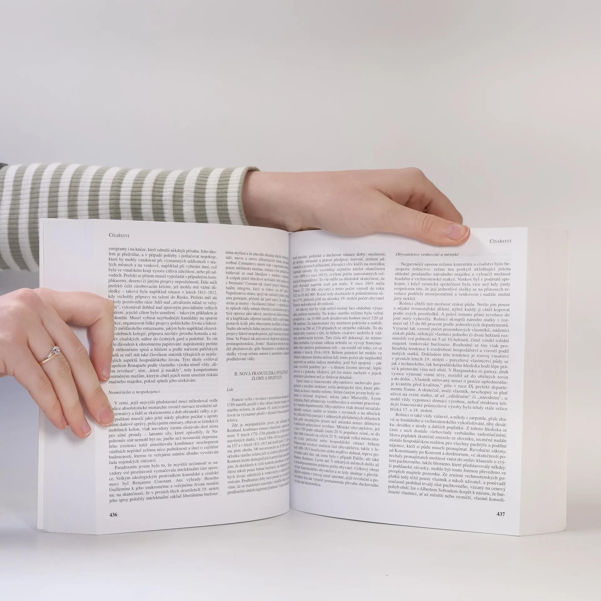 Reprezentativní dílo 33 předních francouzských historiků, pojednávající o dějinách Francie od prehistorické doby až po konec 20. století. Autoři jednotlivých kapitol spojili co nejtěsněji 'dějiny událostí a dějiny hospodářských i sociálních struktur s historií způsobů života, práce, se sídlištní geografií v návaznosti na přírodní podmínky, s tím, jak se rozvíjely náboženské představy, religiózní praktiky, názory, umělecká a literární tvorba, výchova, morálka, myšlení a vědecký pokrok'. Před čtenářem se tak otevírají francouzské dějiny jako 'dějiny úhrnu civilizačních jevů v zemích, z nichž se dnes skládá Francie'.