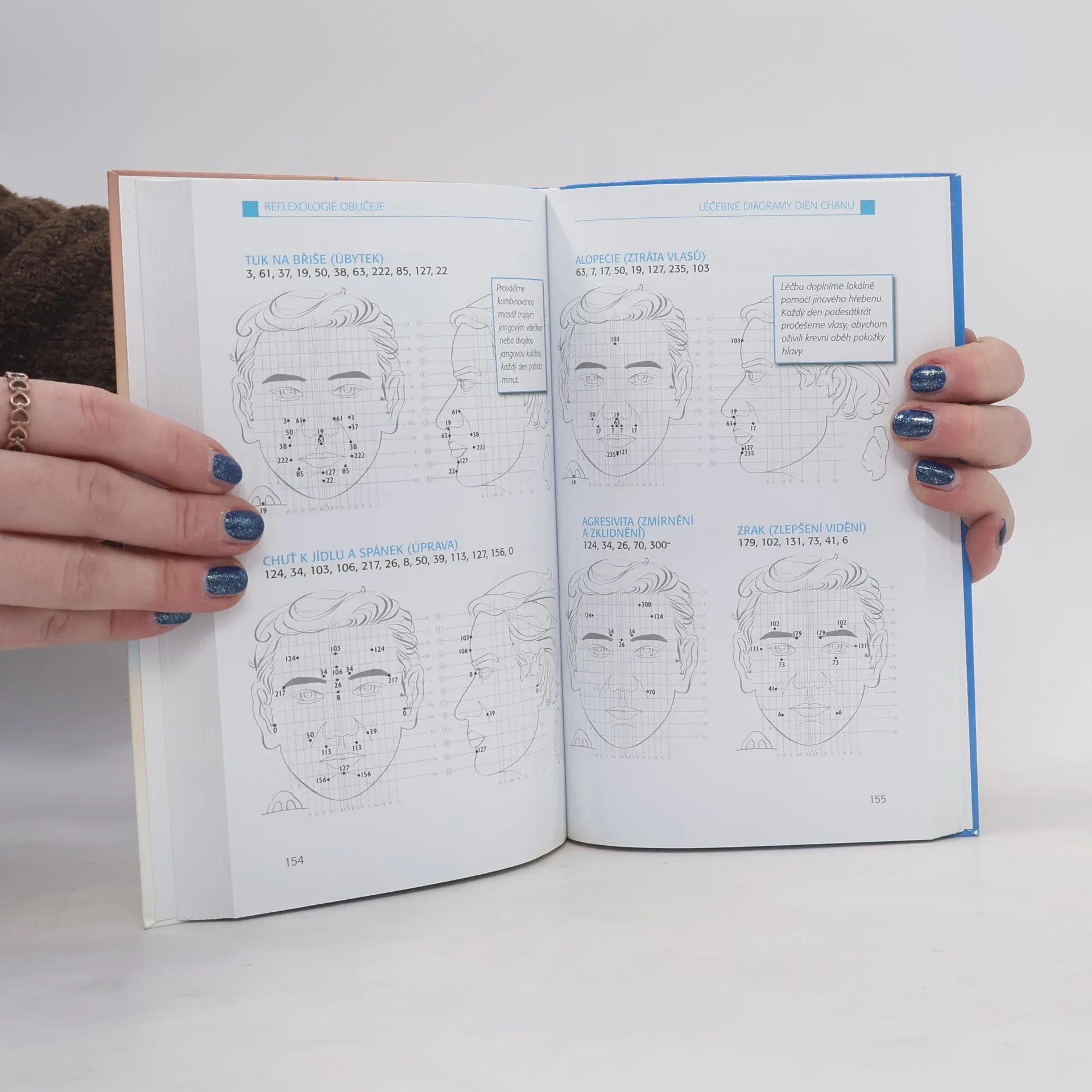 Úleva od bolestí kloubů, svalů a šlach, zmírnění hormonálních, menstruačních, kožních, nervových, oběhových, dýchacích a trávicích potíží – stimulací 30 základních bodů na obličeji může každý z nás ošetřit svého blízkého nebo sám sebe velmi jednoduchým způsobem. Ve chvíli, kdy pocítíme bolest, stačí ihned aplikovat reflexní léčbu a výsledky stimulace se mohou dostavit okamžitě. Stačí naše prsty, dlaně, nebo pomocné nástroje používané k technikám reflexní terapie.