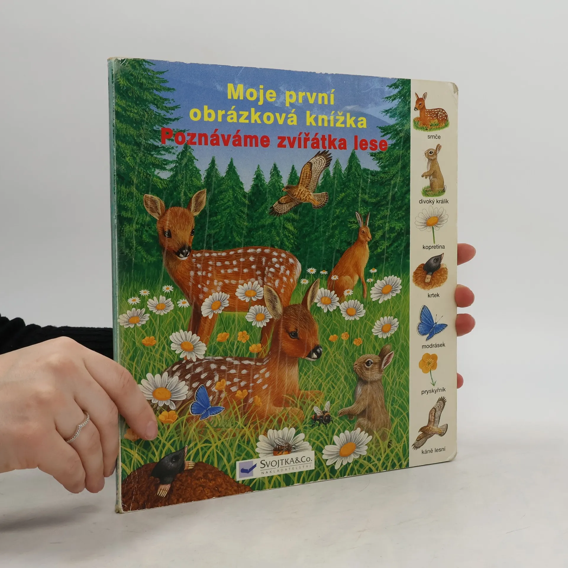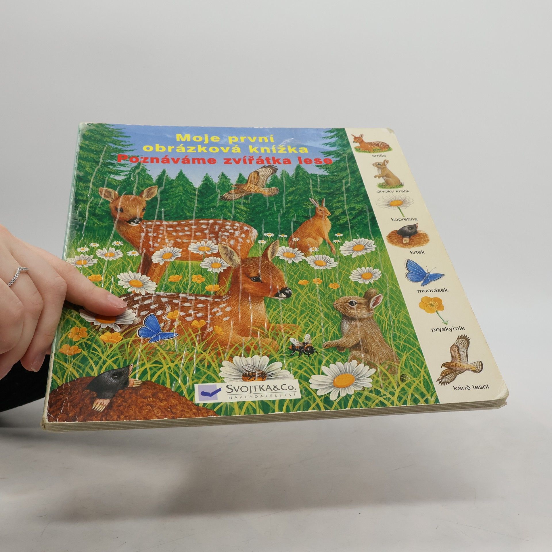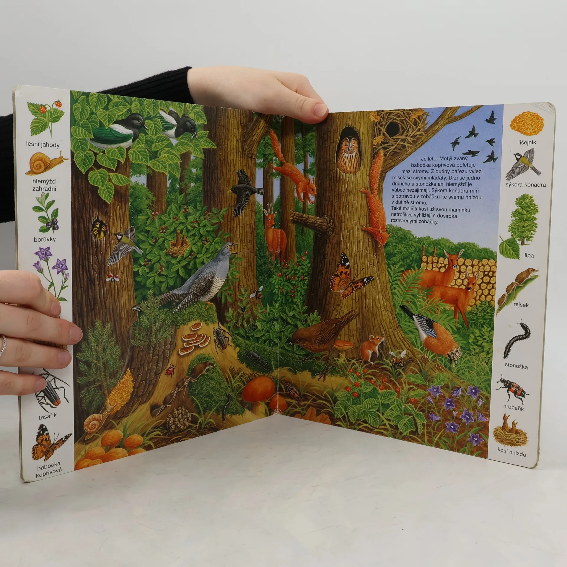 Toto leporelo je určeno pro děti, které se zajímají o svět kolem sebe, zvláště o zvířátka žijící v lese, a chtějí se o nich něco dozvědět. V knížce je vyobrazeno, která zvířátka, brouky i rostliny můžete vidět na jaře na louce, jak krmí bachyně svoje selátka, co můžeme zahlédnout v lese v létě a jak bojují jeleni v září na mýtině. Dozvíte se třeba, která zvířátka jedí bukvice a která dávají přednost oříškům. Leporelo obsahuje otázky, na které v něm vaše dítě najde odpovědi. Je doplněna krásnými barevnými ilustracemi a rastrem s podrobnými vyobrazeními.