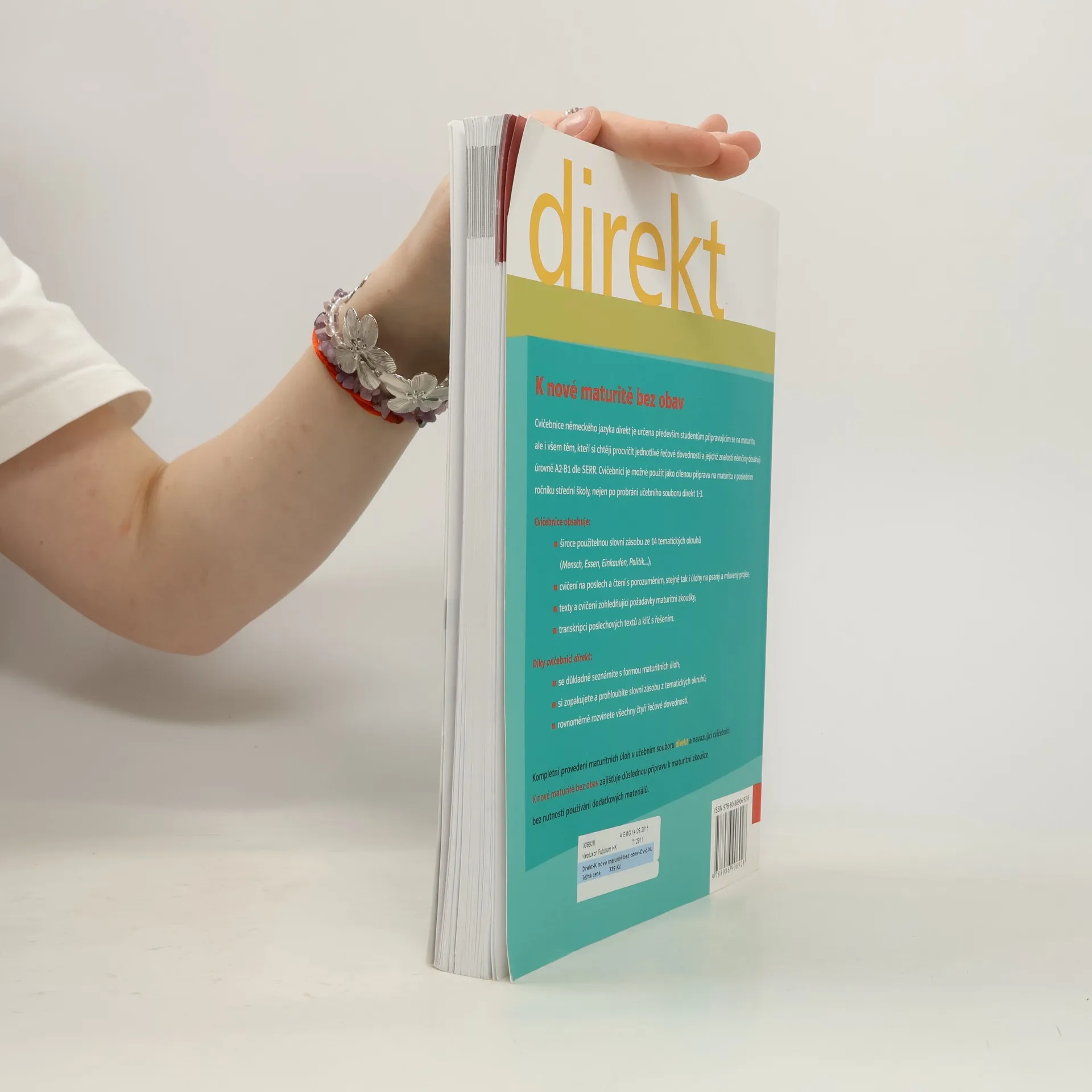 Cvičebnice německého jazyka direkt je určena především studentům připravujícím se na maturitu, ale i všem těm, kteří si chtějí procvičit jednotlivé jazykové dovednosti a jejichž znalosti němčiny dosahují úrovně A1-B2 dle SERR. Cvičebnici je možné použít jako cílenou přípravu na maturitu v posledním ročníku střední školy, nejen po probrání učebního souboru direkt 1-3. Cvičebnice obsahuje: široce použitelnou slovní zásobu ze 14 tematických okruhů (Mensch, Essen, Einkaufen, Politik,...) cvičení na poslech a čtení s porozuměním, stejně tak i úlohy na psaní a mluvení texty a cvičení zohledňující požadavky maturitní zkoušky transkripci poslechových textů a klíč s řešením Díky cvičebnici direkt: se důkladně seznámíte s formou maturitních úloh zopakujete si a prohloubíte slovní zásobu z tematických okruhů rovnoměrně rozvinete všechny čtyři jazykové dovednosti.