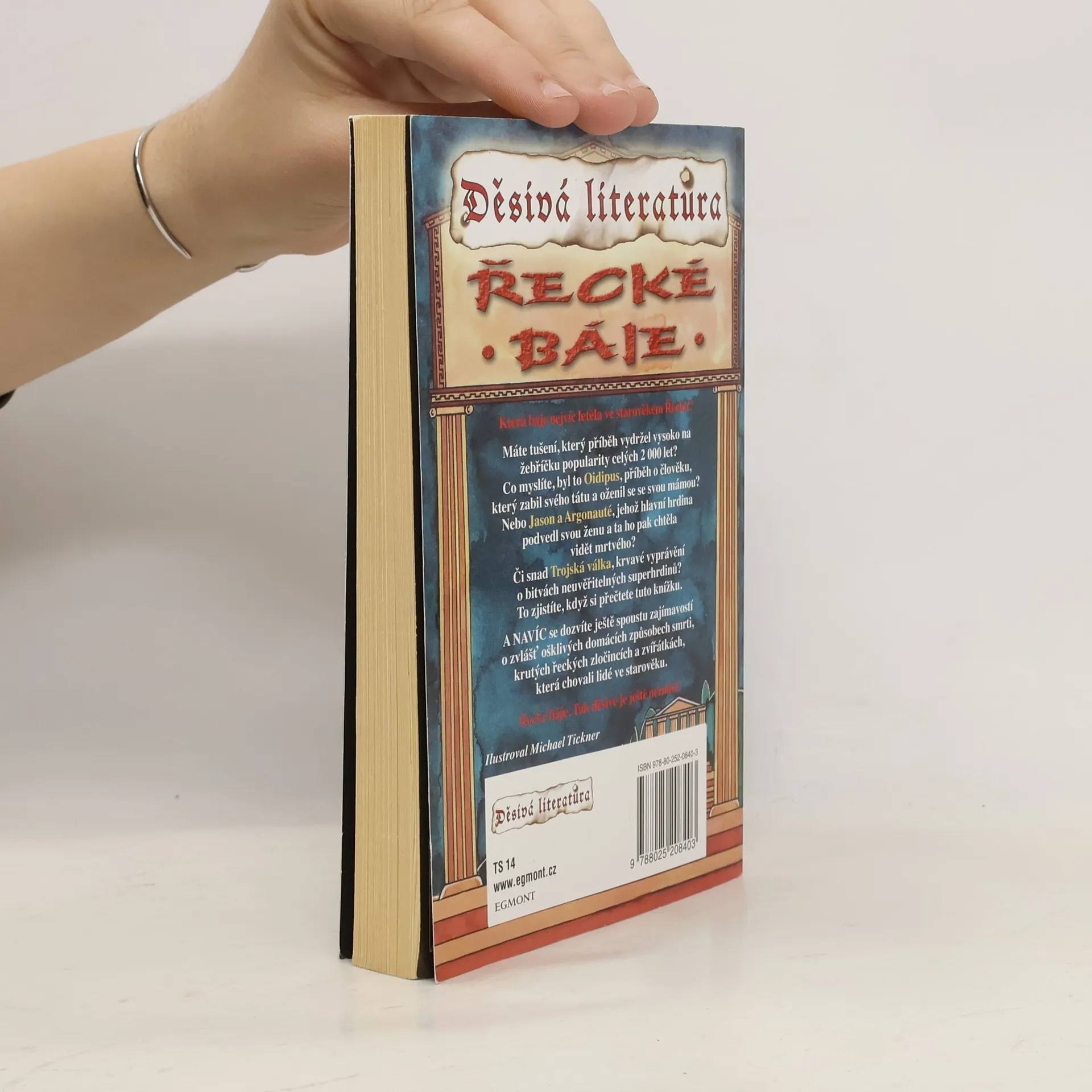 Která báje nejvíc letěla ve starověkém Řecku? Máte tušení, který příběh vydržel vysoko na žebříčku popularity celých 2000 let? Co myslíte, byl to Oidipus, příběh o člověku, který zabil svého tátu a oženil se se svou mámou, či spíš Jason a Argonauté, jehož hlavní hrdina podvedl svou ženu a ta ho pak chtěla vidět mrtvého, anebo Trojská válka, krvavé vyprávění o bitvách neuvěřitelných superhrdinů? To zjistíte, když si přečtete tuto knížku. A NAVÍC se dozvíte ještě spoustu zajímavostí o zvlášť ošklivých způsobech smrti, krutých řeckých zločincích a zvířátkách, která chovali lidé ve starověku. Řecké báje. Tak děsivé je ještě neznáte!