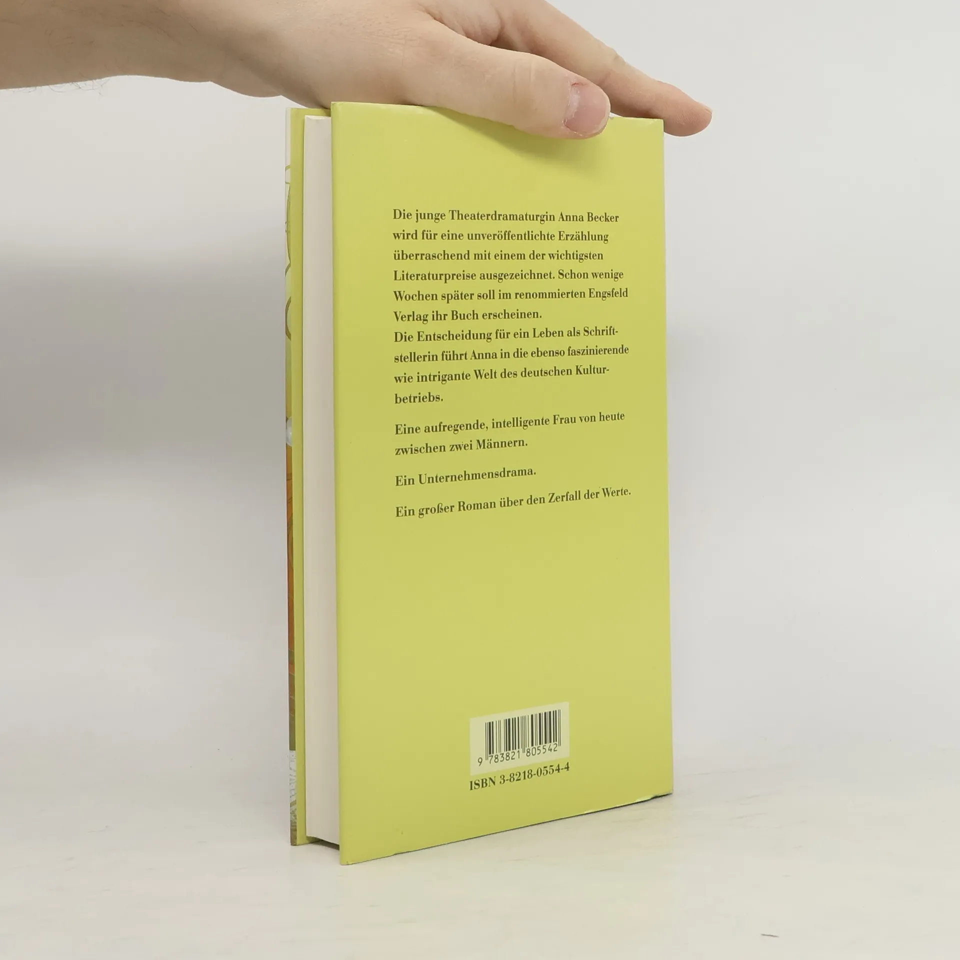 Die junge Theaterdramaturgin Anna Becker wird für eine unveröffentlichte Erzählung überraschend mit einem der wichtigsten Literaturpreise ausgezeichnet. Schon wenige Wochen später soll ihr Buch erscheinen. Die Entscheidung für ein Leben als Schriftstellerin führt Anna in die ebenso faszinierende wie intrigante Welt des deutschen Kulturbetriebs.