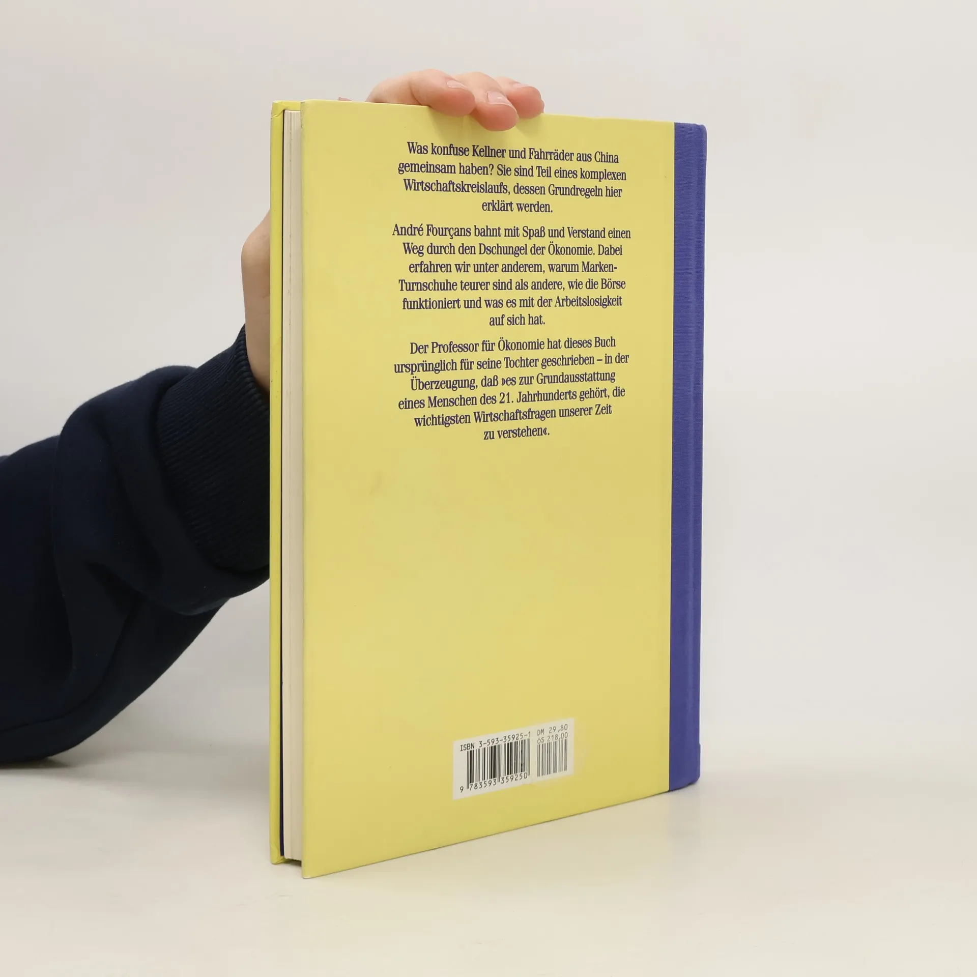 Die Welt der Wirtschaft û ein Buch mit sieben Siegeln? In den vergnüglichen achtzehn Lektionen erklärt André Fourçan die wesentlichen wirtschaftlichen Zusammenhänge. Im Stile einer fiktiven Unterhaltung zwischen Vater und Tochter schlägt der Autor Pfade in den Wirtschaftsdschungel und erhellt die verwirrenden Fachbegriffe. Das Buch beantwortet den Erwachsenen die Fragen über die Ökonomie, die ihnen ihre Kinder stellen.