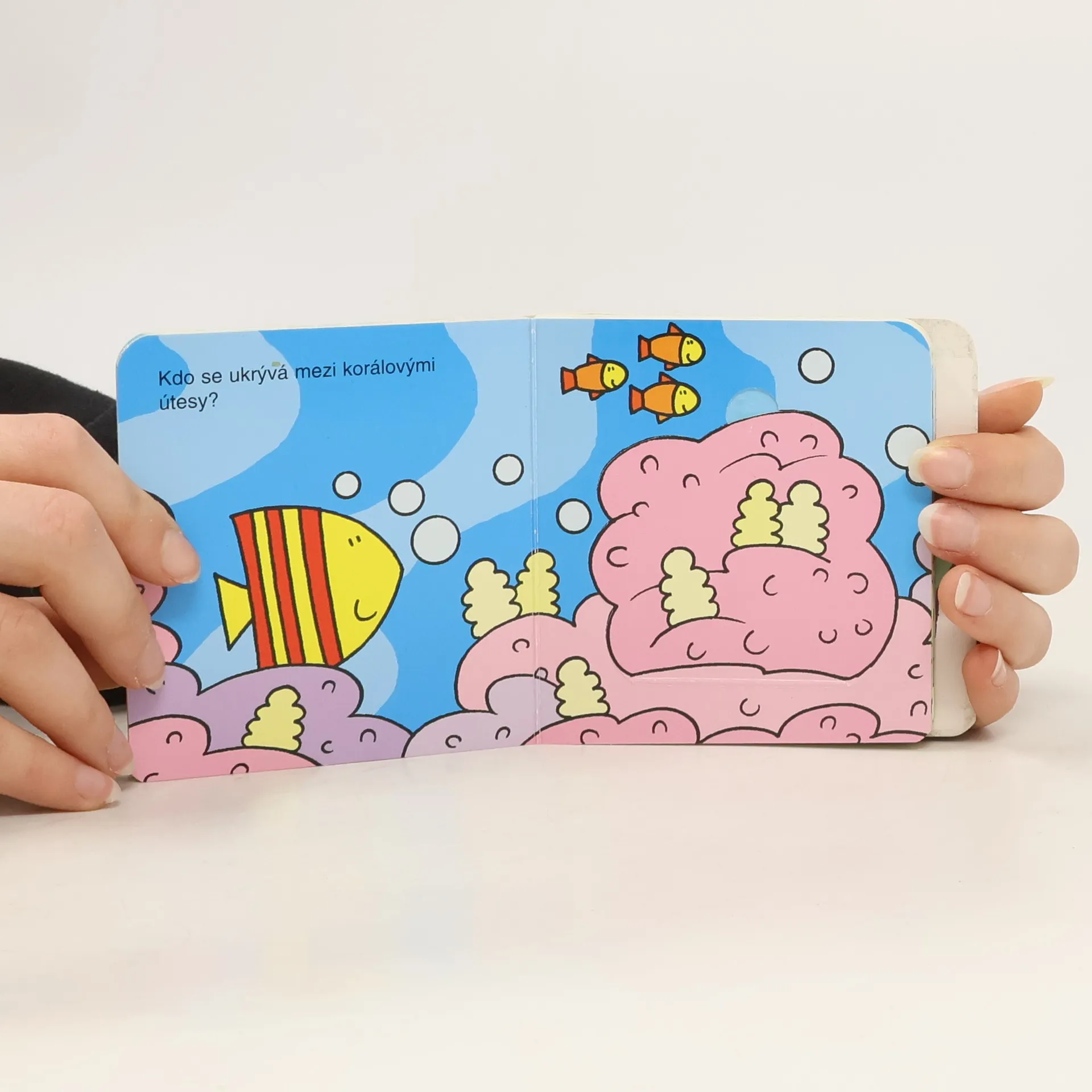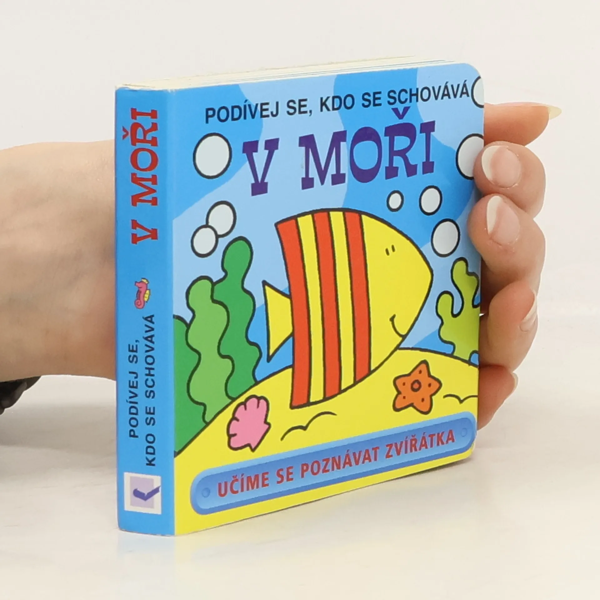 Podívej se pod okénko a najdi toho, kdo se tam schovává. Leporelo pro děti od 1 do 6 let, které je naučí zábavnou formou poznávat zvířátka, která mohou potkat v moři – rybky, mořské koníky či hvězdice a další.