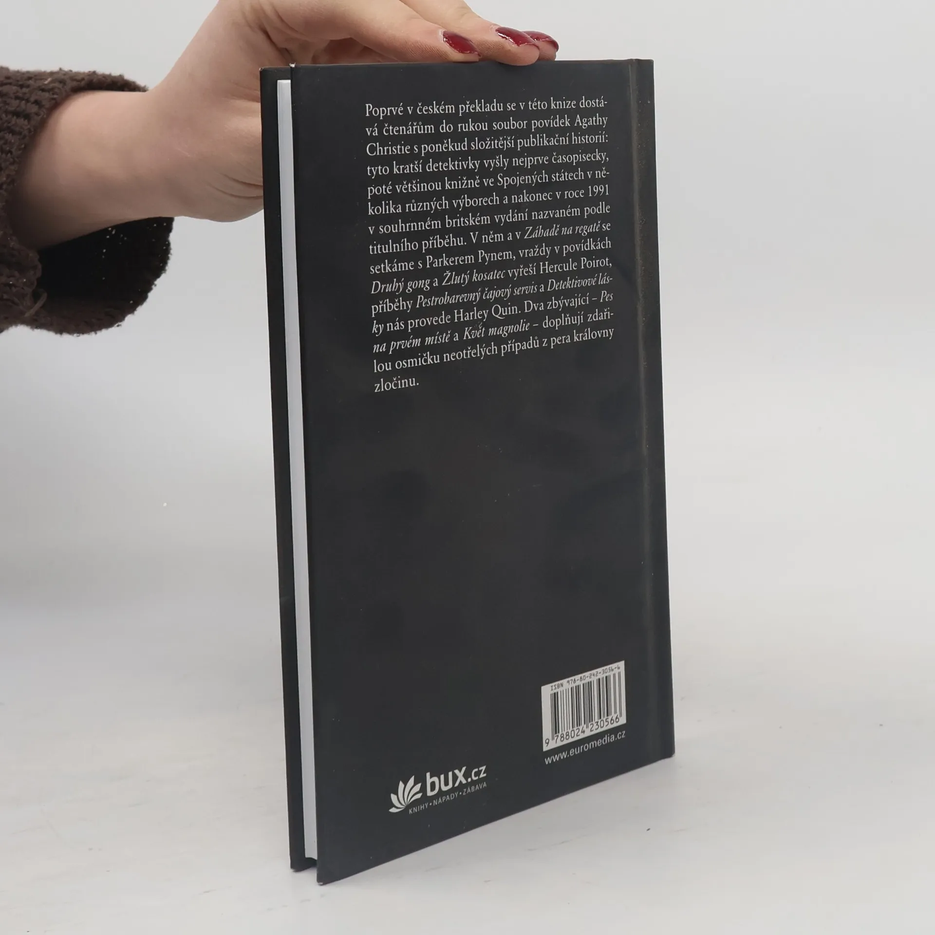 Soubor vydaný ve velké Británii v roce 1991 zahrnuje povídky, které do té doby vyšly knižně pouze ve Spojených státech. V titulním příběhu a v Záhadě na regatě se setkáme s Parkerem Pynem, v povídkách Druhý gong a Žlutý kosatec s Herculem Poirotem, v příbězích nazvaných Pestrobarevný čajový servis a Detektivové lásky pak s Harleym Quinem. Dva zbývající – Pes na prvém místě a Květ magnolie – doplňují zdařilou osmičku neotřelých případů z pera královny detektivek.