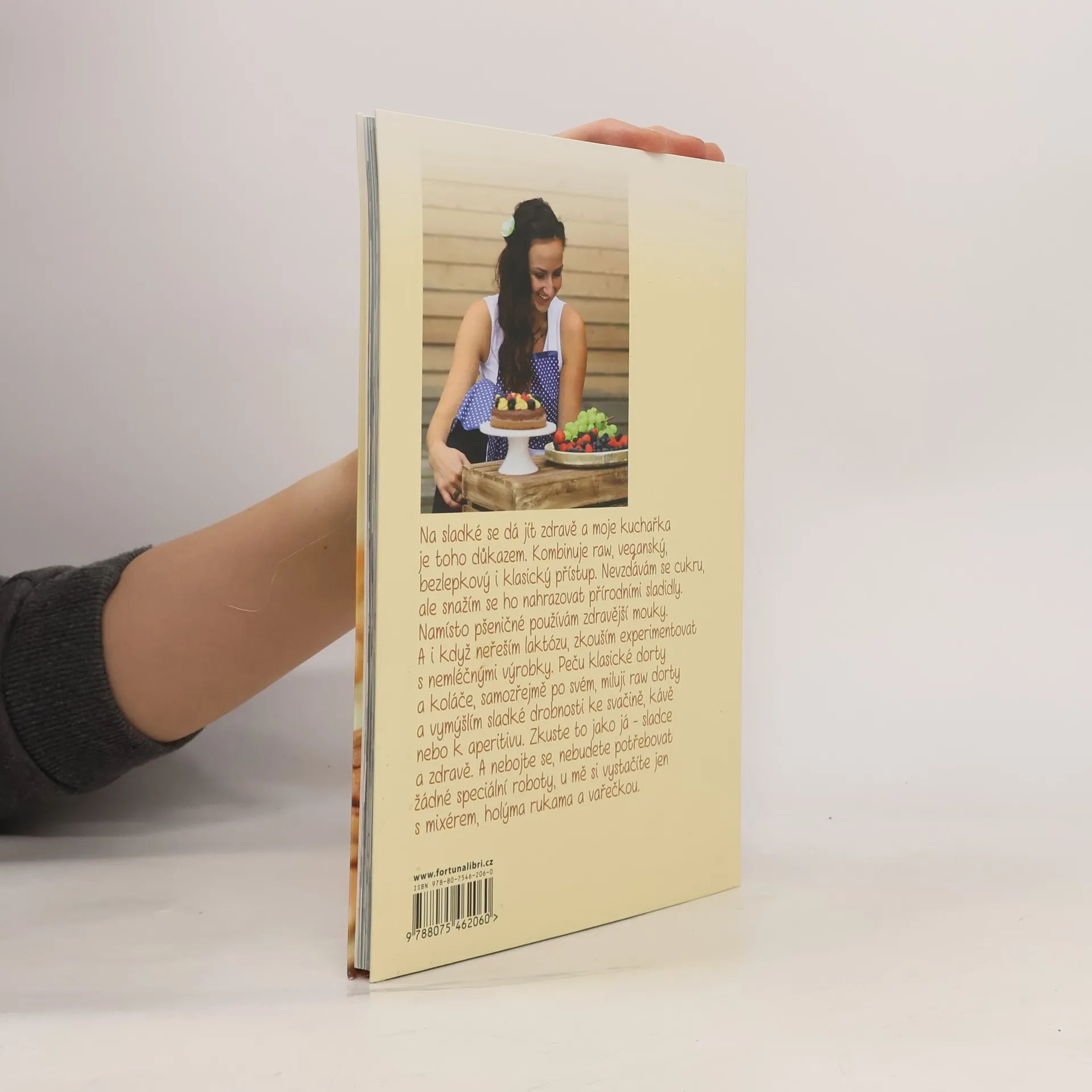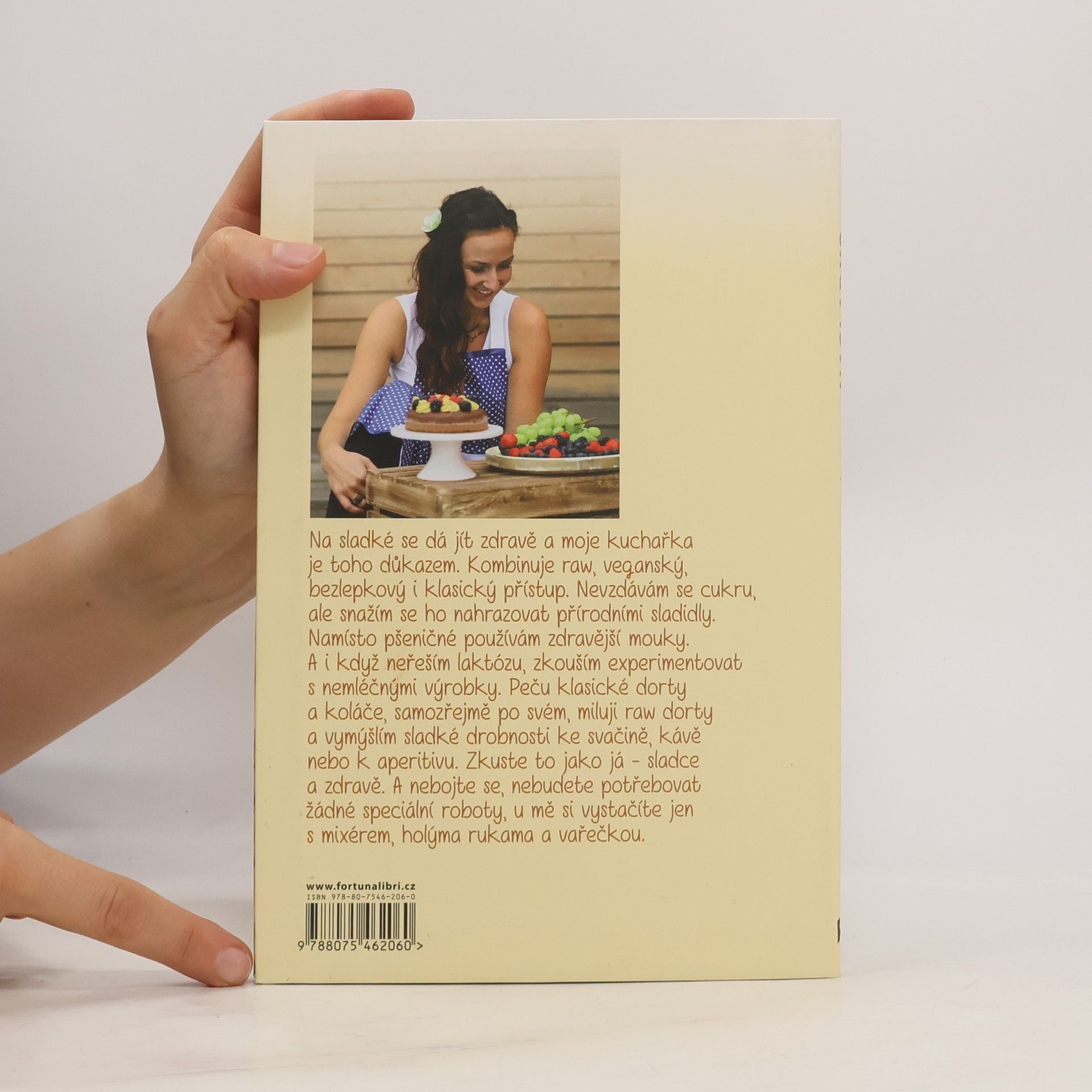 Na sladké se dá jít zdravě a tato kuchařka je toho důkazem. Kombinuje raw, veganský a bezlepkový i klasický přístup. Nevzdává se cukru, ale snaží se ho nahrazovat přírodními sladidly. Namísto pšeničné mouky je použita mouka zdravější. A i když se v kuchařce laktóza neřeší, najdete experimenty i s nemléčnými výrobky. Autorka peče klasické dorty a koláče, samozřejmě po svém, miluje raw dorty a vymýšlí sladké drobnosti ke svačině, kávě nebo aperitivu. Zkuste to jako ona – sladce a zdravě! A nebojte se, nebudete potřebovat žádné speciální roboty, vystačíte si jen s mixérem, holýma rukama a vařečkou.