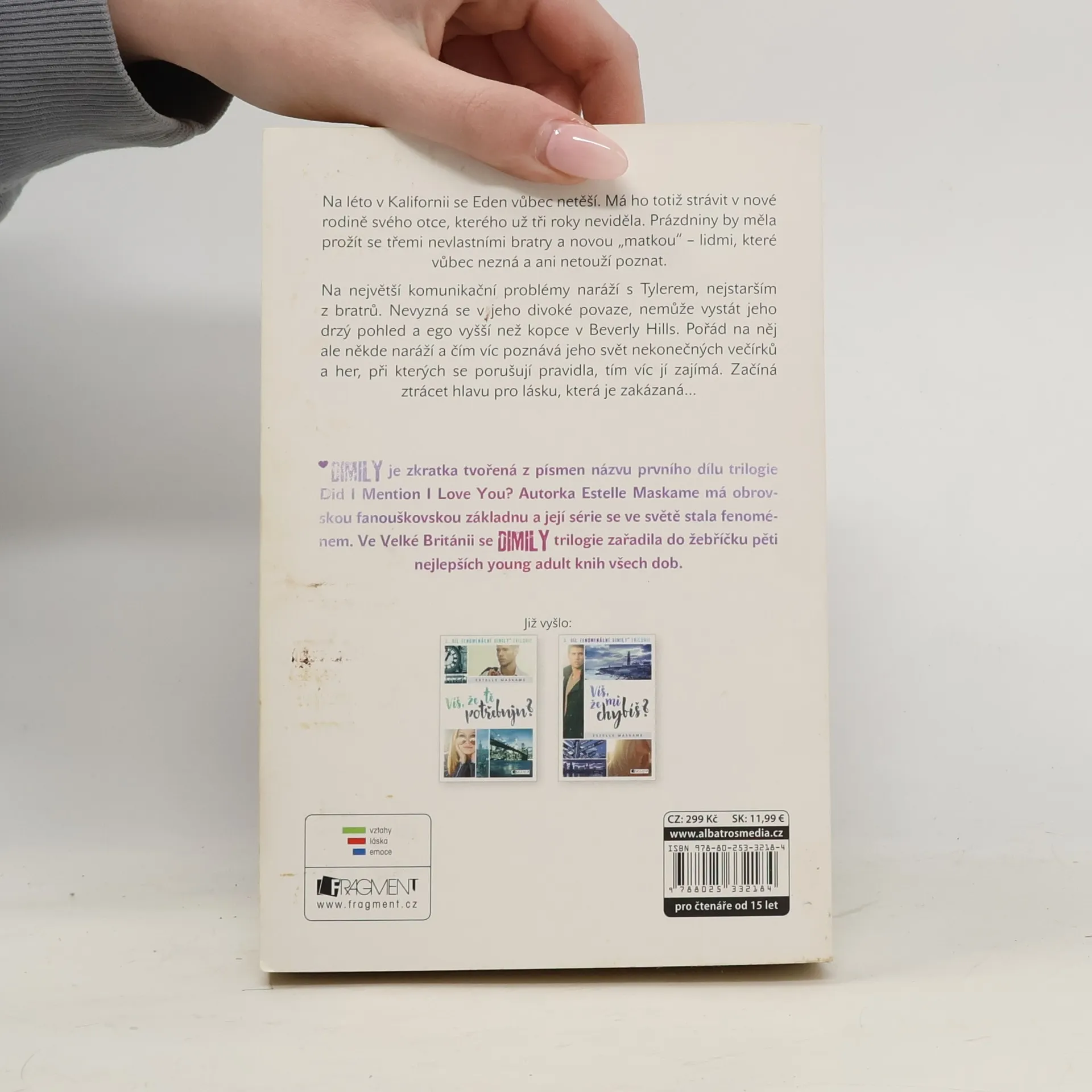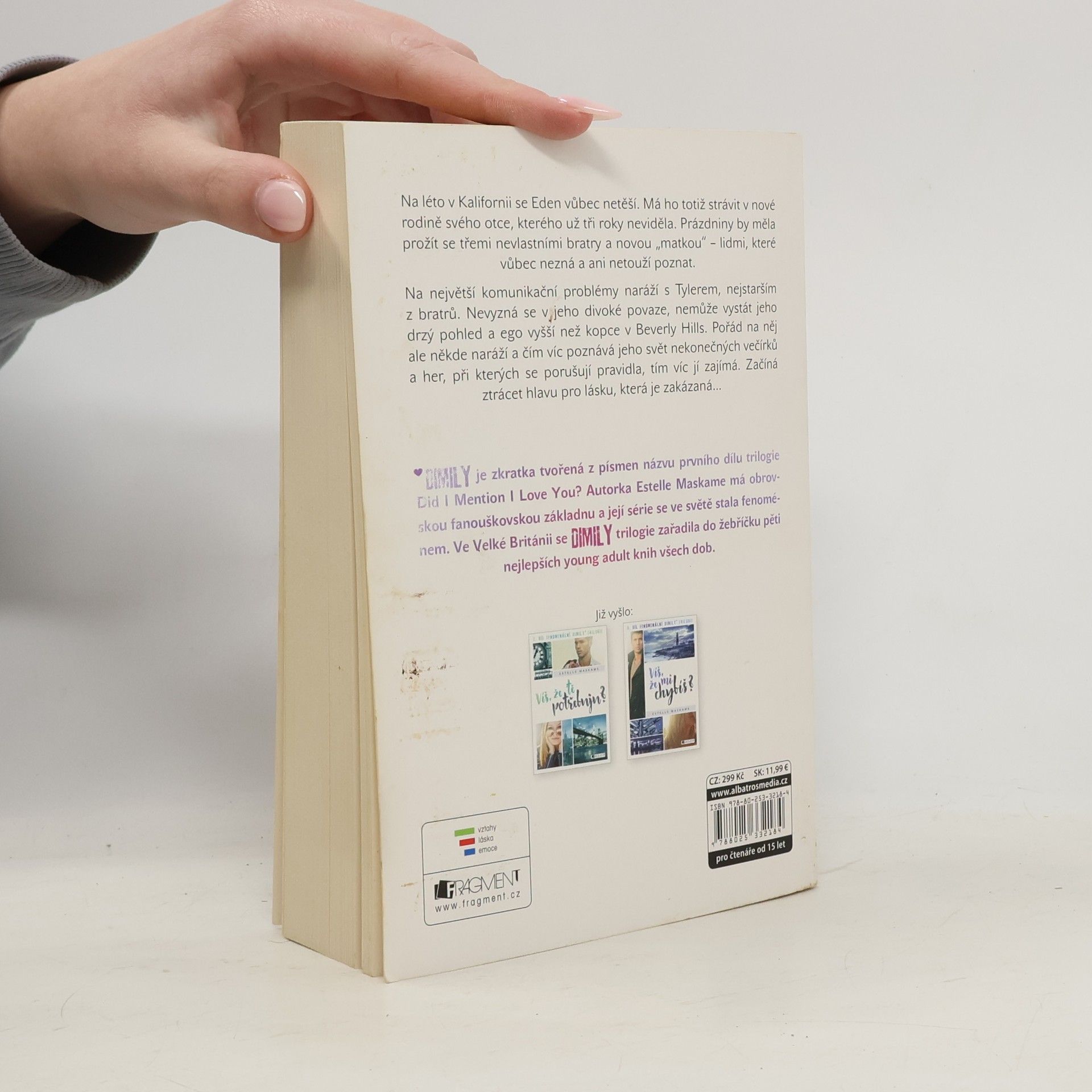 Na léto v Kalifornii se Eden vůbec netěší. Strávit ho má totiž v nové rodině svého otce, kterého už tři roky neviděla. Prázdniny by měla prožít s třemi nevlastními bratry a novou „matkou“ – lidmi, které vůbec nezná a ani netouží poznat. Na největší komunikační problémy naráží s Tylerem, nejstarším z bratrů. Nevyzná se v jeho divoké povaze, nemůže vystát jeho drzý pohled a ego vyšší než kopce v Beverly Hills. Pořád na něj ale někde naráží a čím víc poznává jeho svět nekonečných večírků a her, při kterých se porušují pravidla, tím víc jí zajímá. Začíná ztrácet hlavu pro lásku, která je zakázaná… DIMILY je zkratka tvořená z prvních písmen názvu prvního dílu trilogie Did I Mention I Love You? Autorka Estelle Maskameová má obrovskou fanouškovskou základnu a její série se ve světě stala fenoménem. Ve Velké Británii se DIMILY trilogie zařadila do žebříčku pěti nejlepších young adult knih všech dob.