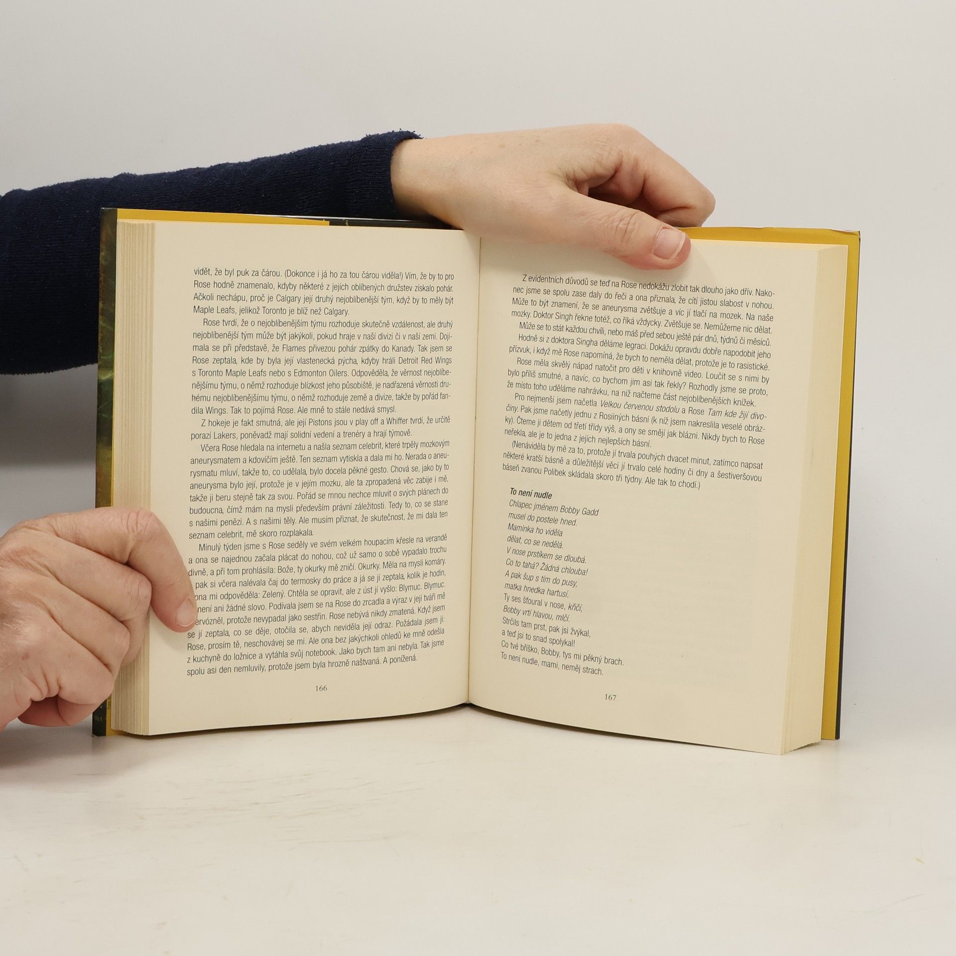Siamská dvojčata. Příběh Rose a Ruby, siamských dvojčat, která jsou spojena hlavami. Dívky přicházejí na svět v malém městečku nedaleko Toronta právě v okamžiku, kdy na obec udeří tornádo, a jejich svobodná matka je záhy opouští. O dvojčata se od té doby stará teta Lovey, zdravotní sestra, která odmítá pohlížet na ně jako na znetvořené či postižené děti. V devětadvaceti letech jazykově obratnější a sečtělejší Rose začíná psát autobiografii, vzniká tak příběh o touze po nezávislosti, ale současně o umění kompromisu a výjimečné lásce.