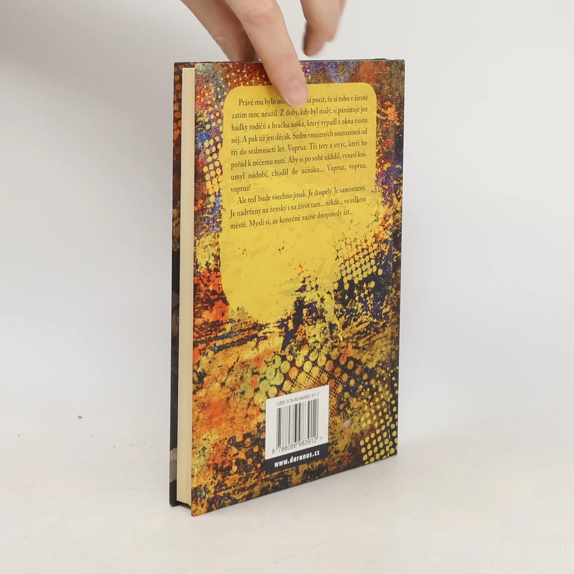 Právě mu bylo osmnáct a má pocit, že si toho v životě zatím moc neužil. Z doby, kdy byl malý, si pamatuje jen hádky rodičů a hračku šaška, který vypadl z okna místo něj. A pak už jen děcák. Sedm vnucených sourozenců od tří do sedmnácti let. Vopruz. Tři tety a strýc, kteří ho pořád k něčemu nutí. Aby si po sobě uklidil, vynesl koš, umyl nádobí, chodil do učňáku… Vopruz, vopruz, vopruz! Ale teď bude všechno jinak. Je dospělý. Je samostatný. Je nadržený na ženský i na život tam… někde… ve velkém městě. Myslí si, že konečně začne doopravdy žít…