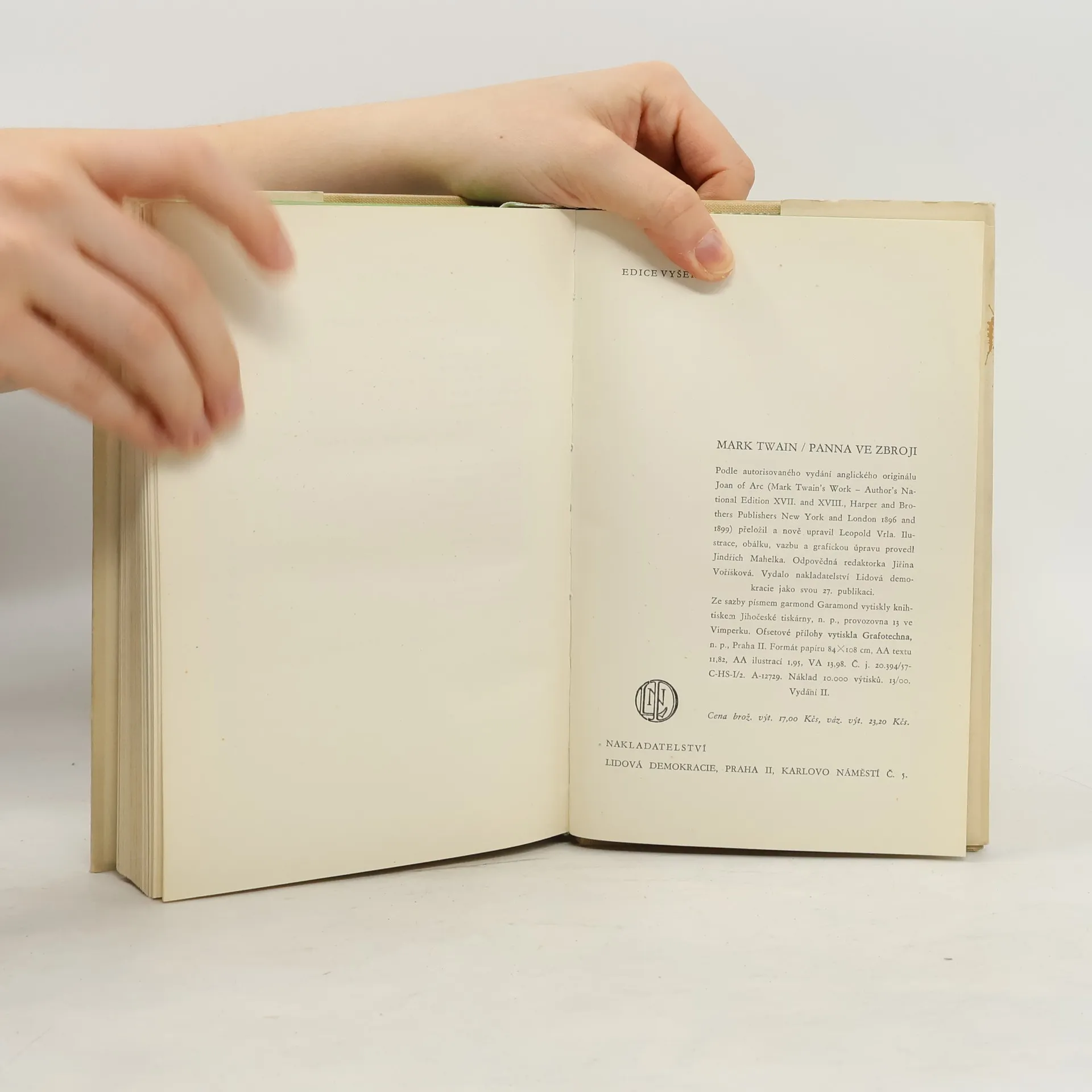Panna ve zbroji, Mark Twain, Leopold Vrla, Jindřich Mahelka