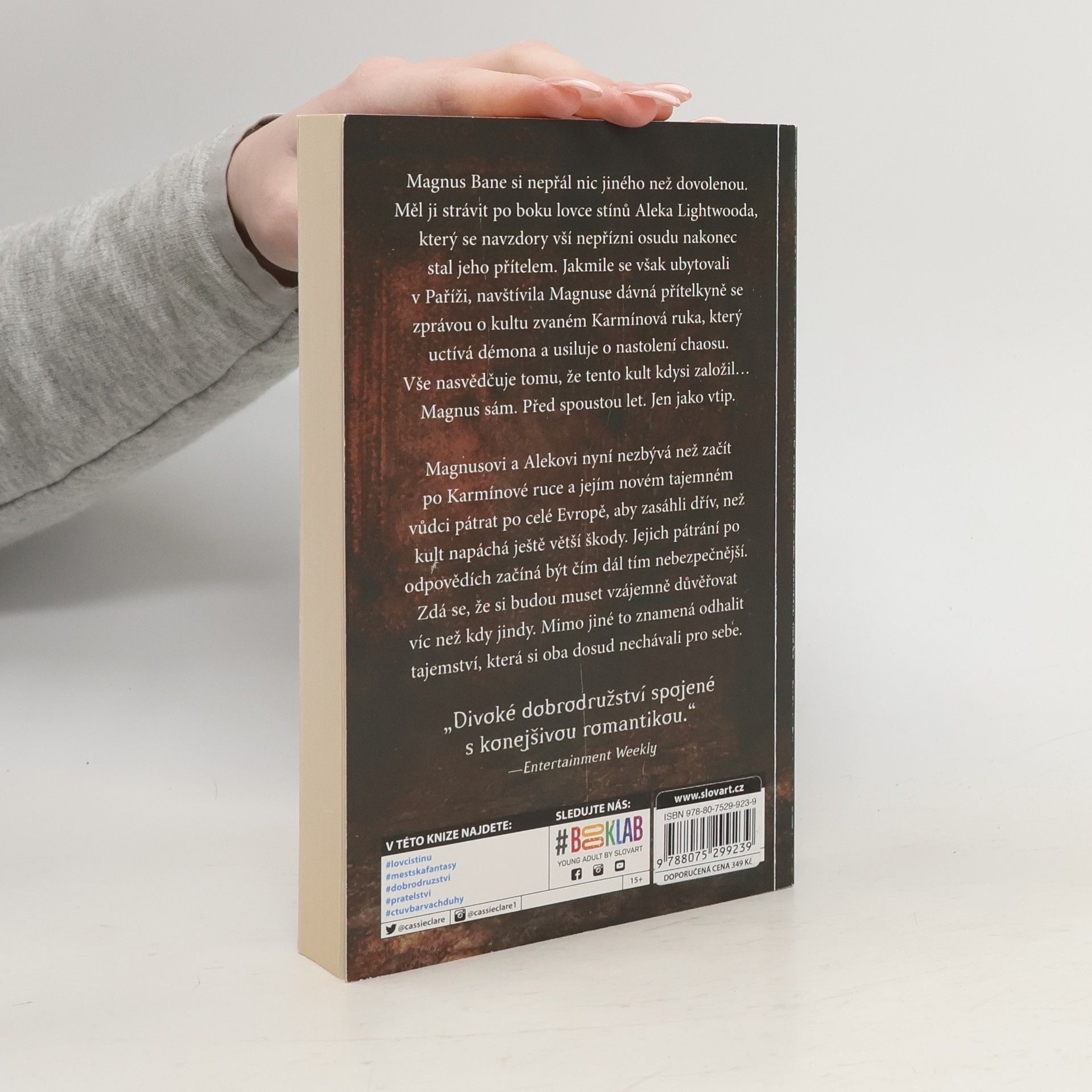 Další příběh lovců stínů, který je zároveň první knihou nové série. Její děj sleduje velkého čaroděje Magnuse Banea a Aleca Lightwooda na jejich cestách po světě po skončení velké války. Magnus Bane si nepřál nic jiného než dovolenou — luxusní výlet po Evropě po boku lovce stínů Aleca Lightwooda, který se navzdory vší nepřízni osudu nakonec stal jeho přítelem. Jakmile se však ubytují v Paříži, navštíví hrdinu dávná přítelkyně s informací o kultu zvaném Karmínová ruka, který uctívá démona a usiluje o vyvolání chaosu. Vše nasvědčuje tomu, že tento kult založil Magnus sám. Před spoustou let. Jen jako vtip. Nyní musí Magnus a Alec hledat po celé Evropě, aby vystopovali Karmínovou ruku a jejich nepolapitelného nového vůdce, dřív než kult způsobí další škody. Jako by nestačilo, že jejich romantická dovolená byla odsunutá, démoni nyní pronásledují každý jejich krok a je těžké poznat přítele od nepřítele. Jejich hledání začíná být čím dál zoufalejší, a tak Magnus a Alec si musí navzájem důvěřovat více než kdy jindy - i když to znamená odhalit tajemství, která oba mají.