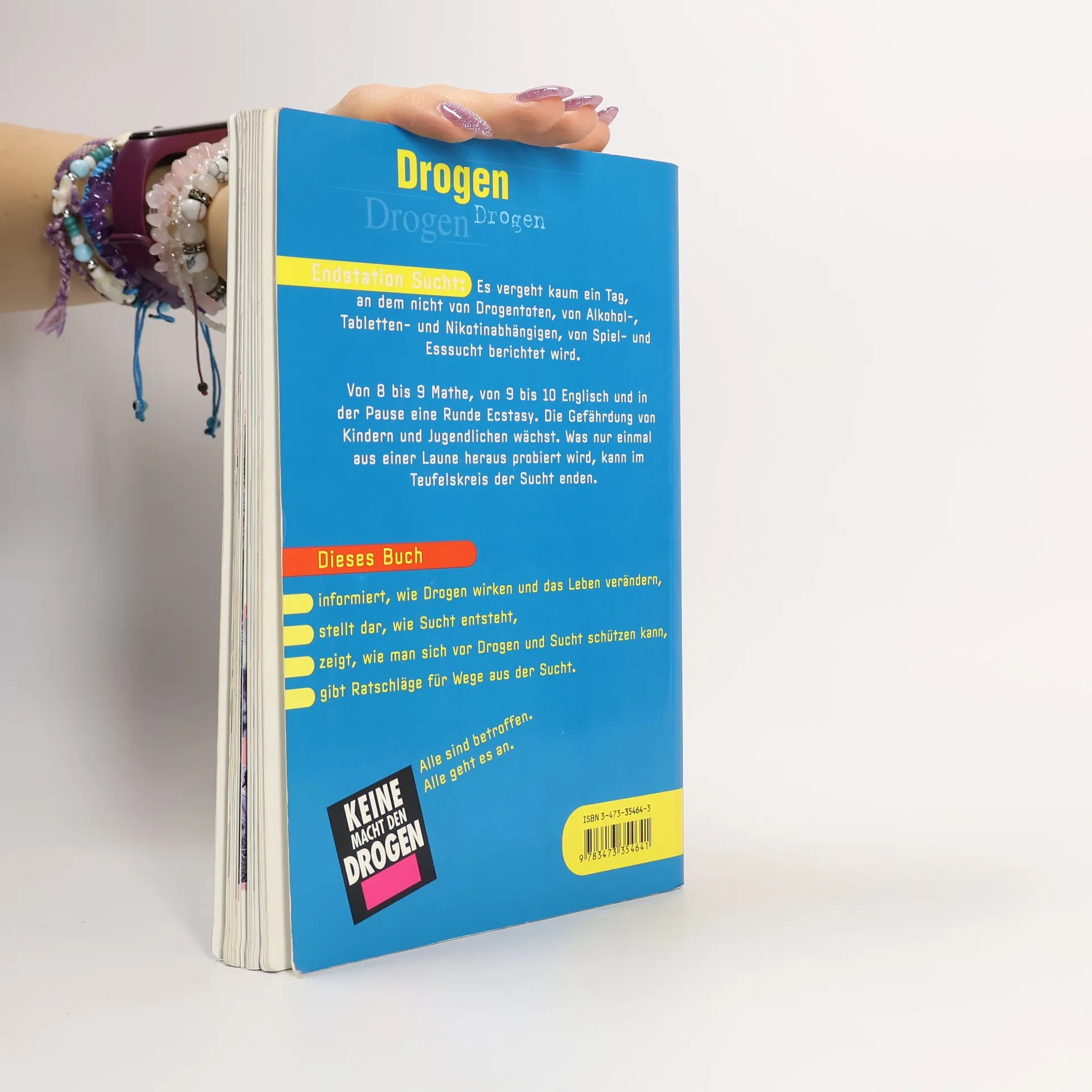 Dieses Buch will Kinder und Jugendliche für die Gefahren, die von Drogen und Suchtverhalten ausgehen, sensibilisieren: Es informiert über die Wirkungsweise von Drogen, zeigt, wie sie das Leben verändern und wie man sich vor ihnen schützen kann. Neben fundierten Informationen findet der Leser Fallbeispiele, Reportagen, Zitate, Psycho-Checks und Infokästen.