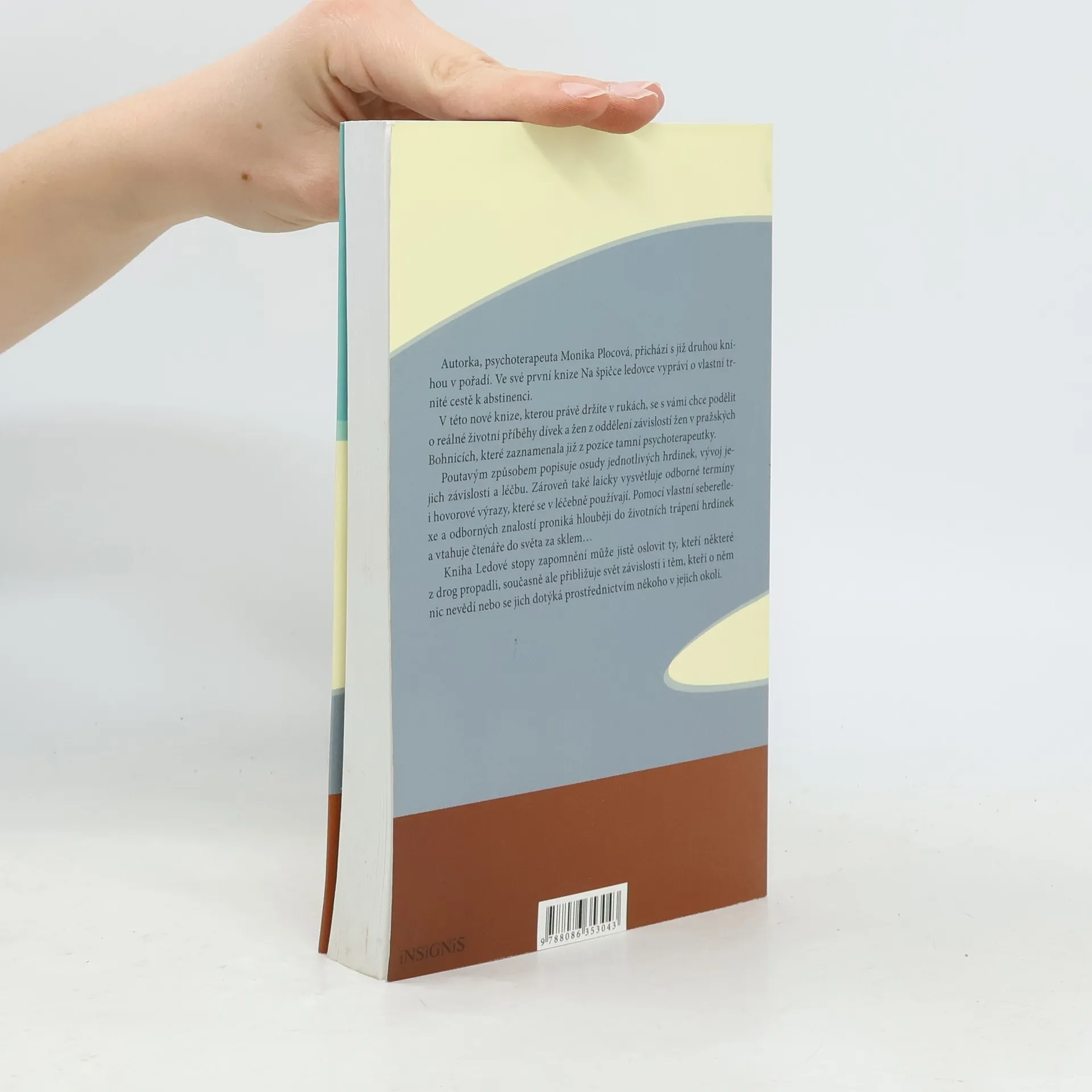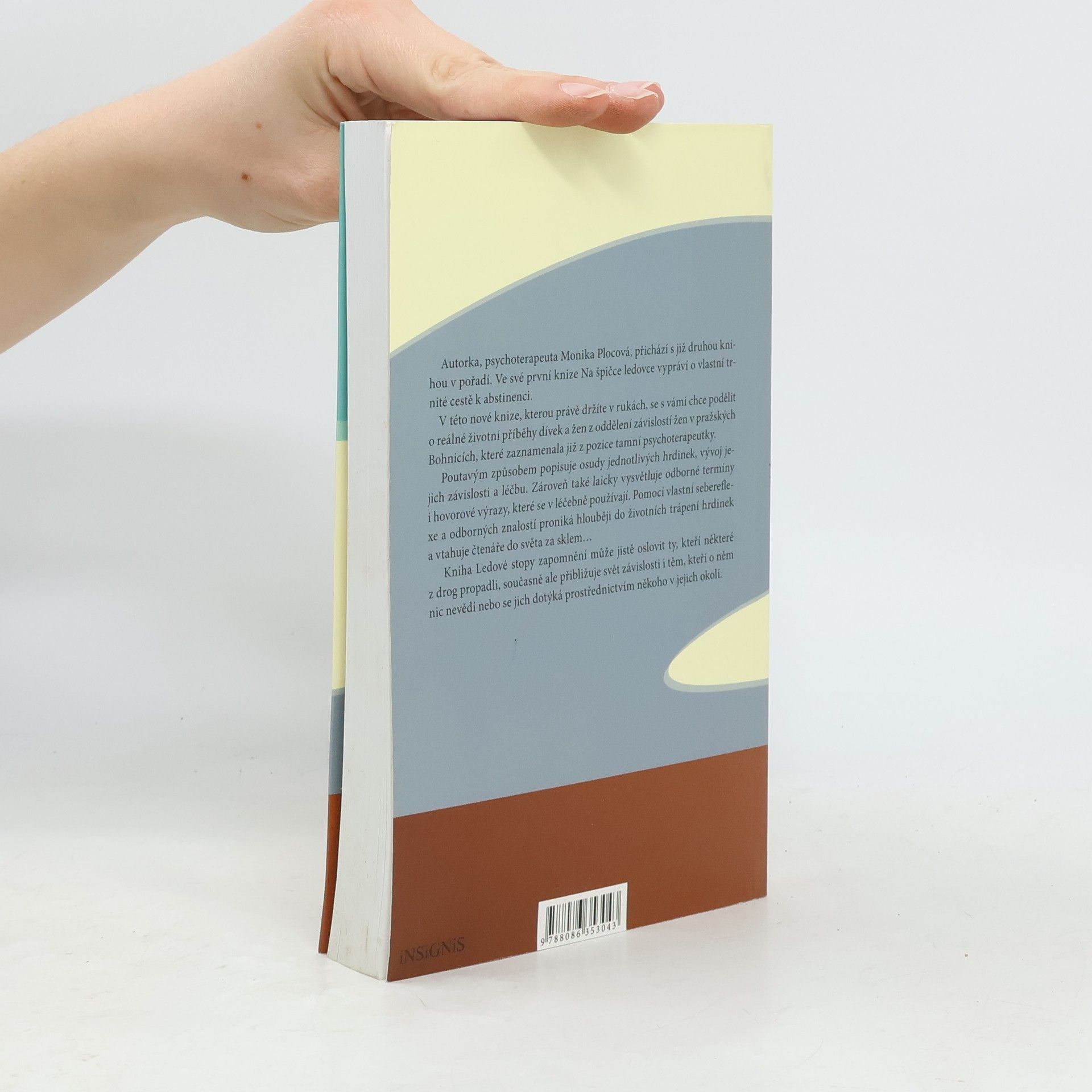 Autorka, psychoterapeuta Monika Plocová, přichází s již druhou knihou v pořadí. Ve své první knize Na špičce ledovce vypráví o vlastní trnité cestě k abstinenci. V této nové knize se s vámi chce podělit o reálné životní příběhy dívek a žen z oddělení závislostí žen v pražských Bohnicích, které zaznamenala již z pozice tamní psychoterapeutky. Poutavým způsobem popisuje osudy jednotlivých hrdinek a vývoj jejich závislosti a léčbu. Zároveň také laicky vysvětluje odborné termíny i hovorové výrazy, které se v léčebně používají. Pomocí vlastní sebereflexe a odborných znalostí proniká hlouběji do životních trápení hrdinek a vtahuje čtenáře do světa za sklem… Kniha Ledové stopy zapomnění může jistě oslovit tisíce těch, kteří některé z drog propadli, současně ale přibližuje svět závislosti i těm, kteří o něm nic nevědí, nebo se jich dotýká prostřednictvím někoho v jejich okolí.