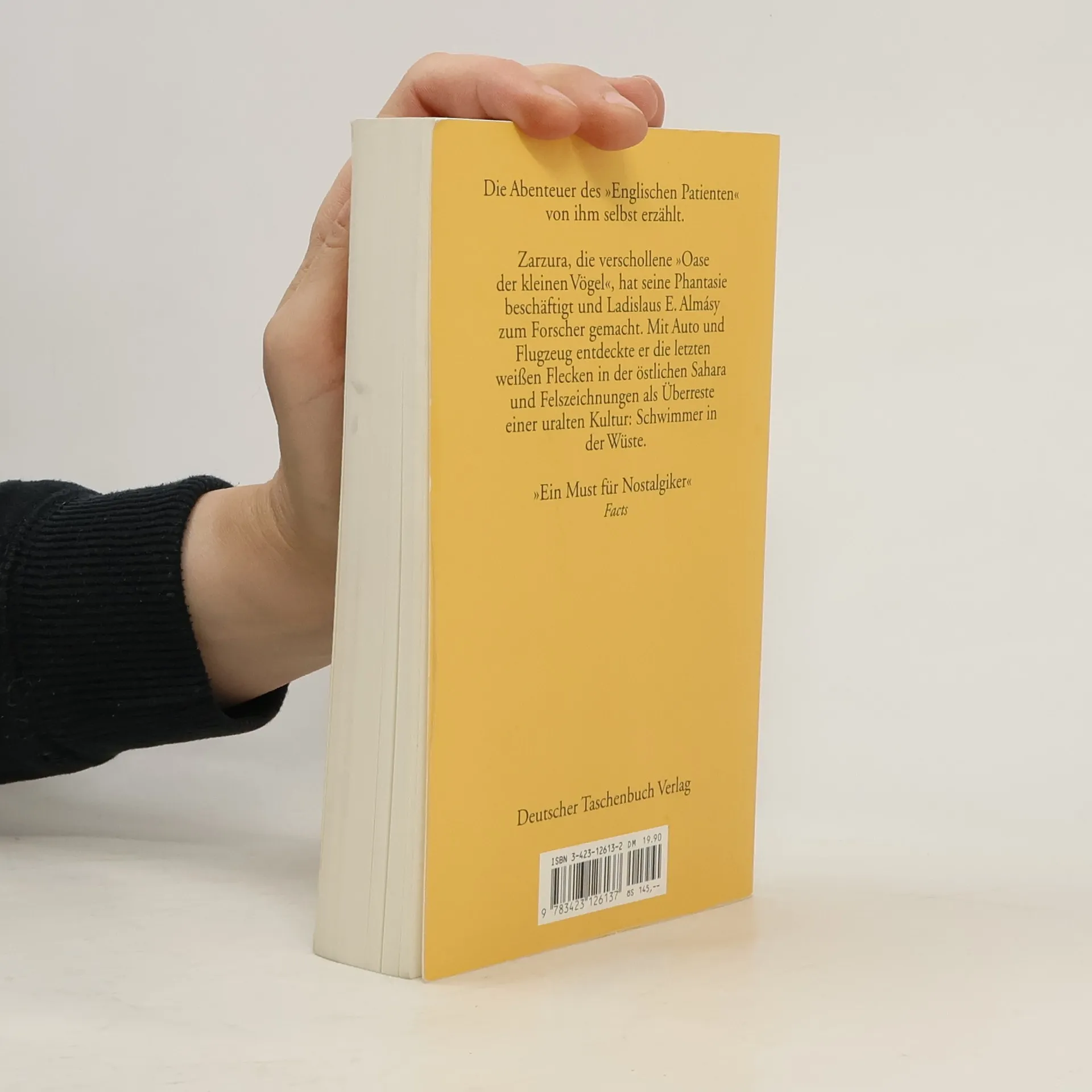 Die Originalaufzeichnungen des „Englischen Patienten“. Den Helden aus Ondaatjes Roman und dem traumhaften, mehrfach prämierten Hollywoodfilm gab es bekanntlich wirklich. Es war der österreichisch-ungarische Flugpionier und Saharaforscher Ladislaus E. Almásy, der zum Vorbild für den Roman- und Filmhelden wurde. Almásy hat seine Abenteuer in der Sahara in einem 1939 erstmals erschienenen Buch selbst beschrieben, das durch den großen Erfolg des „Englischen Patienten“ neue Aktualität bekommen hat.