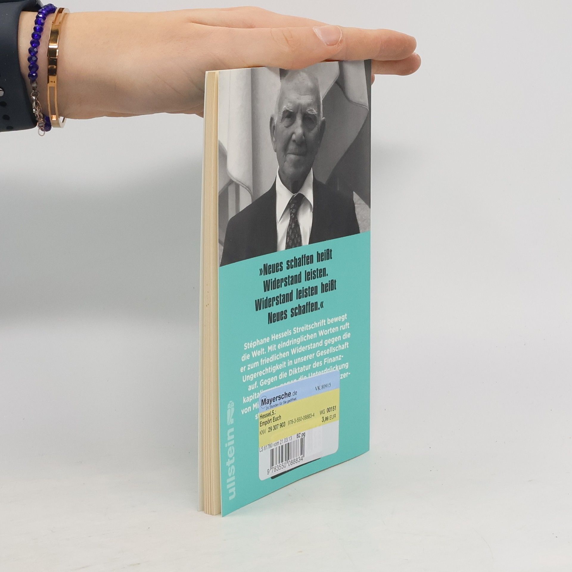 Mit eindringlichen Worten ruft Stéphane Hessel zum friedlichen Widerstand gegen die Ungerechtigkeit in unserer Gesellschaft auf. Gegen die Diktatur des Finanzkapitalismus, gegen die Unterdrückung von Minderheiten, gegen die ökologische Zerstörung unseres Planeten. »93 Jahre. Das ist schon wie die allerletzte Etappe. Wie lange noch bis zum Ende? Die letzte Gelegenheit, die Nachkommenden teilhaben zu lassen an der Erfahrung, aus der mein politisches Engagement erwachsen ist.« Stéphane Hessels Streitschrift bewegt die Welt. Der gebürtige Berliner war Mitglied der Résistance, hat das KZ Buchenwald überlebt und ist einer der Mitautoren der Menschenrechtserklärung der Vereinten Nationen. Mit emphatischen Worten ruft der ehemalige französische Diplomat zum friedlichen Widerstand gegen die Unzulänglichkeiten unserer Gesellschaft auf. Er beklagt, dass der Finanzkapitalismus die Werte der Zivilisation bedroht und den Lauf der Welt diktiert. Er prangert die Lage der Menschenrechte an, kritisiert die Umweltzerstörung auf unserem Planeten und verurteilt die Politik Israels im Gaza-Streifen als Demütigung der Palästinenser. Stéphane Hessel ist das Gewissen der westlichen Welt und »Frankreichs Rebell der Stunde« (FAZ). Erleben Sie 'Empört Euch!' als 'fahrende Lichtinstallation': http://www. youtube. com/watch? v=xGuGid4lLcE „Der Diplomat Stéphane Hessel“ - Ein Kinodokumentarfilm. derdiplomatstéphanehessel-derfilm. de