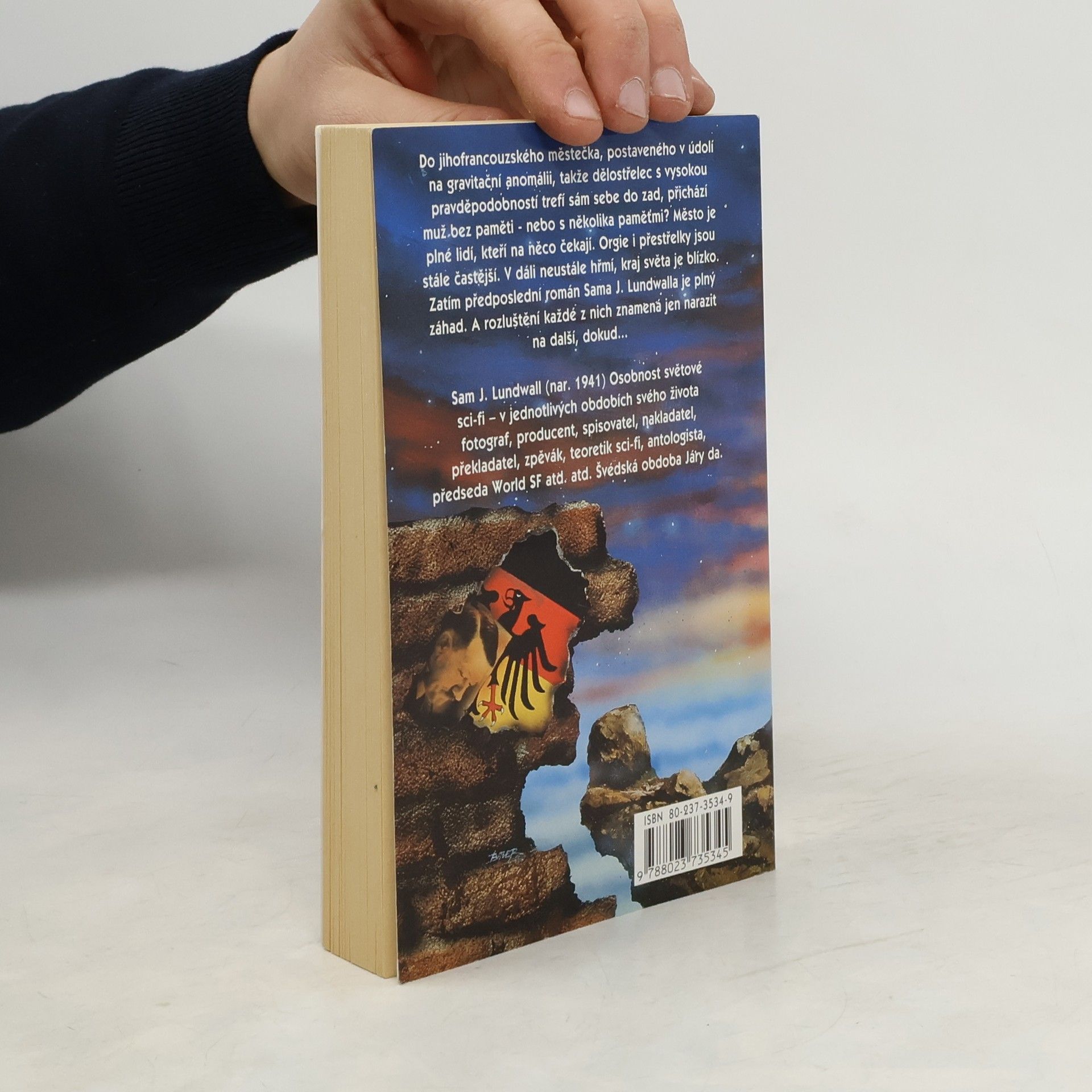 Do jihofrancouzského městečka, postaveného v údolí na gravitační anomálii, takže dělostřelec s vysokou pravděpodobností trefí sám sebe do zad, přichází muž bez paměti – nebo s několika paměťmi? Město je plné lidí, kteří na něco čekají. Orgie i přestřelky jsou stále častější. V dáli neustále hřmí, kraj světa je blízko. Zatím předposlední román Sama J. Lundwalla je plný záhad. A rozluštění každé z nich znamená jen narazit na další, dokud…