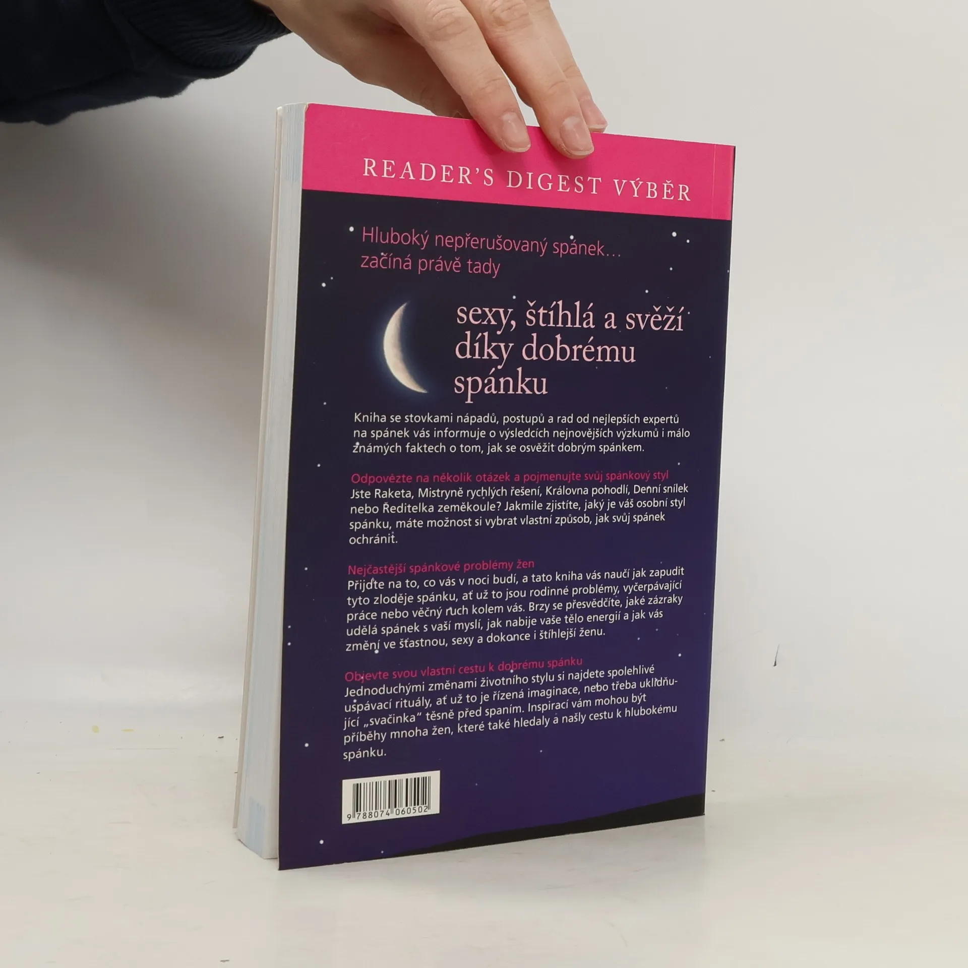 Kniha se stovkami nápadů, postupů a rad od nejlepších expertů na spánek vás informuje o výsledcích nejnovějších výzkumů i málo známých faktech o tom, jak se osvěžit dobrým spánkem. Objevte svou vlastní cestu k dobrému spánku: Jednoduchými změnami životního stylu si najdete spolehlivé uspávací rituály, ať už to je řízená imaginace, nebo třeba uklidňující "svačinka" těsně před spaním. Inspirací vám mohou být příběhy mnoha žen, které také hledaly a našly cestu k hlubokému spánku.