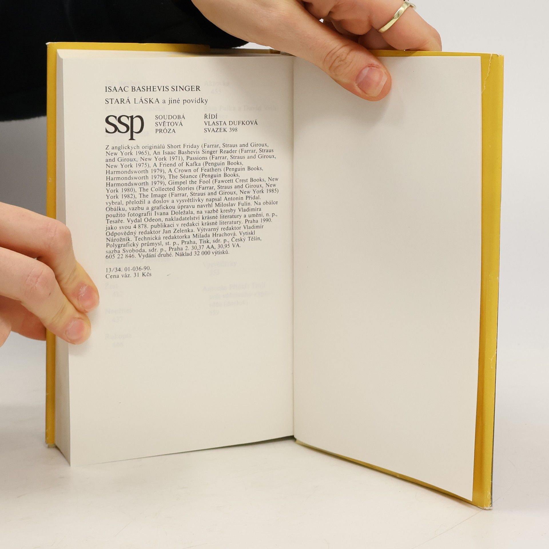 Rozsáhlý výbor dvaačtyřiceti próz sleduje tři základní tematické okruhy Singerova díla: život zaniklého světa židovské diaspory na polském venkově a varšavské periferii počátkem 20. století, intelektuální prostředí ve Varšavě 20. let a osudy polských uprchlíků a vystěhovalců ve Spojených státech v druhé třetině našeho století. 2. vydání