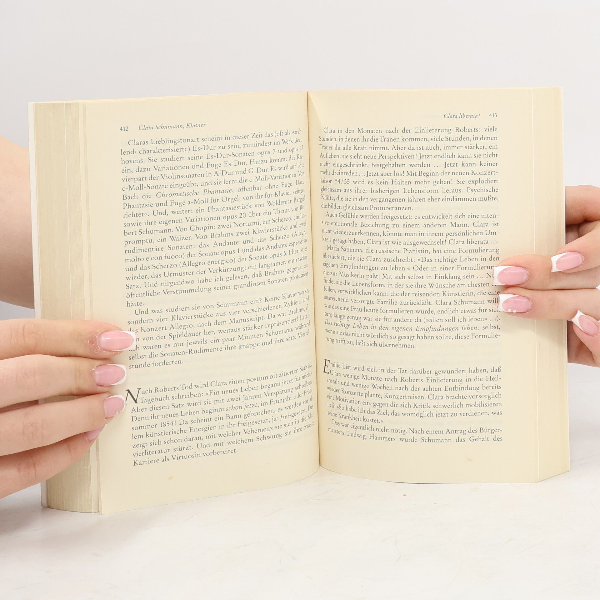 Clara Schumanns Lebensgeschichte ist Legende geworden. Ihre entsagungsreiche Kindheit, ihr außergewöhnliches Talent als Pianistin, die frühe, gegen den Vater durchgesetzte Liebe zum Komponisten Robert Schumann und die Erziehung von sieben Kindern geben genug Stoff für Mythen und Klischees ab. Clara Schumann gilt als musikalisches Wunderkind, Idol romantisch verklärter Liebesvorstellungen, vorbildliche Mutter und verkannte Komponistin. Dieter Kühn zeichnet in seinem biographischen Roman den Lebensweg von Clara Schumann jenseits der tradierten Vorurteile nach, horcht auf feine Zwischentöne und entdeckt oftmals überraschende Disharmonien. Angeregt durch neueste Forschungsergebnisse, gelingt es Kühn erstmalig, auch die Zeit nach Robert Schumanns Tod genauer zu beleuchten und so das Porträt einer hochsensiblen und selbstbewussten Frau zu vervollständigen, in deren Leben sich das 19. Jahrhundert aufs genaueste widerspiegelt.